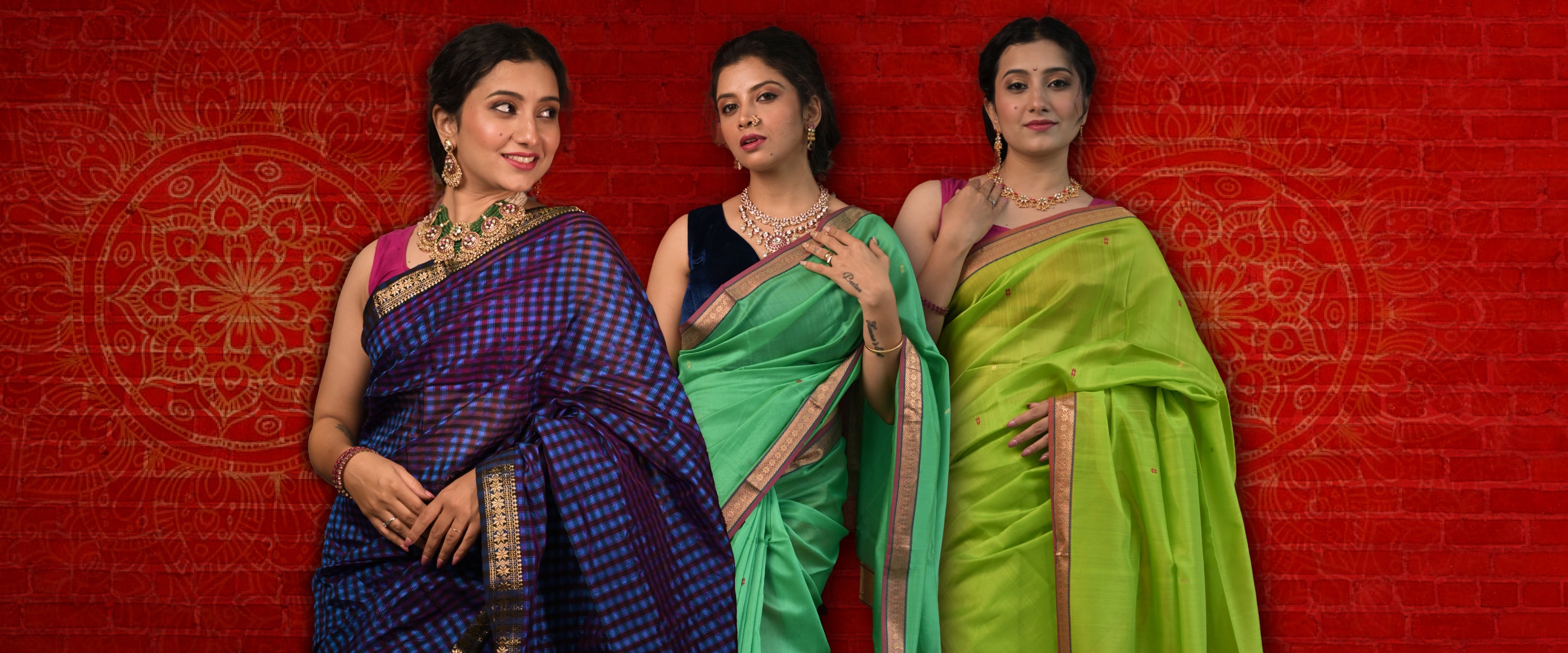 Handwoven to celebrate new beginnings, the Shubh Arambh Collection reflects devotion, grace, and timeless elegance. Crafted in Maheshwari silk with a blend of silk and cotton, these sarees balance tradition with lightness and comfort, making them perfect for every auspicious occasion.