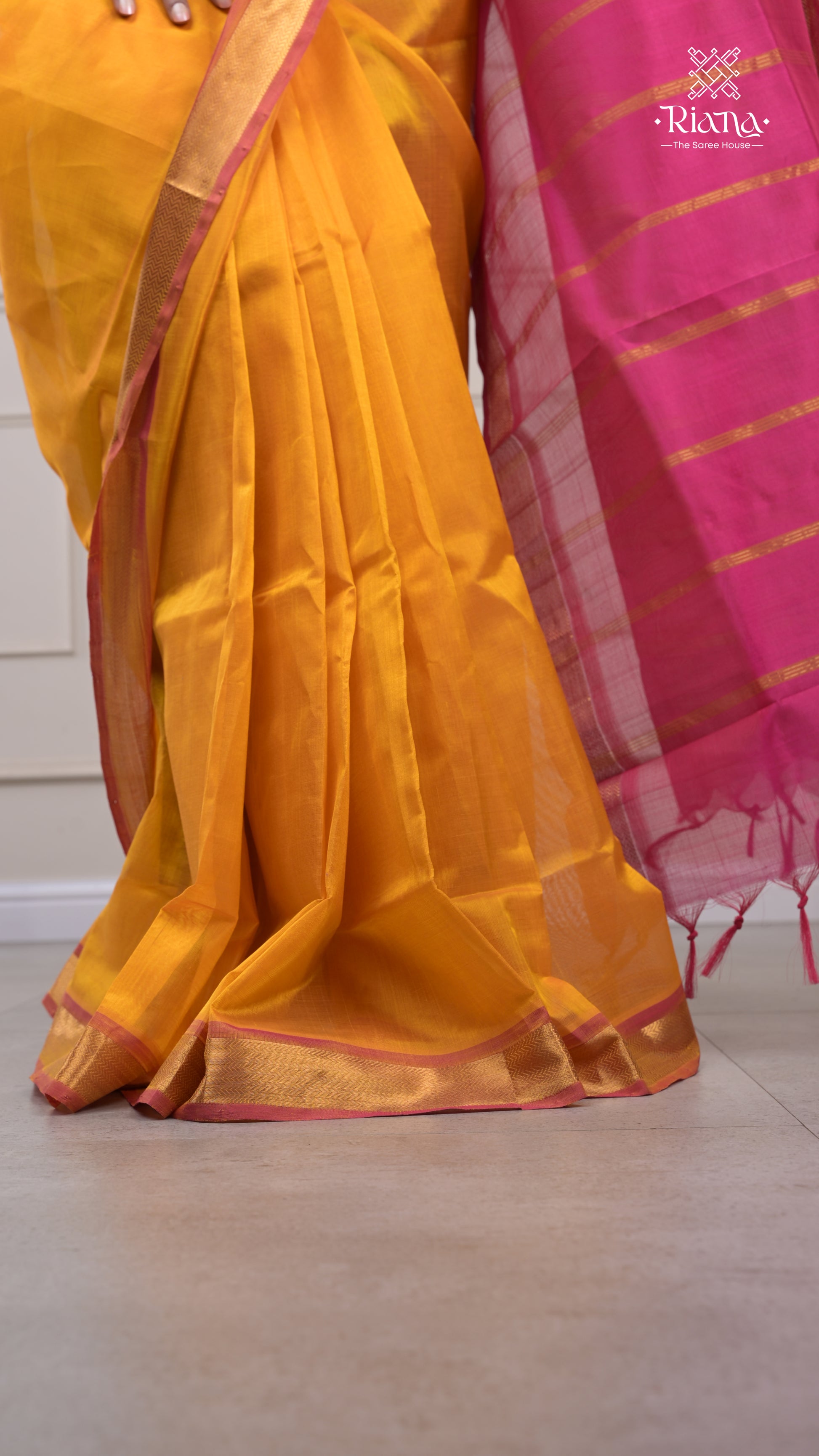 This saree features a Kasavu-style border, bringing a touch of traditional elegance to its design. The subtle golden hue of the border beautifully complements the saree’s overall look. Perfect for festive occasions, it radiates timeless charm and sophistication.
