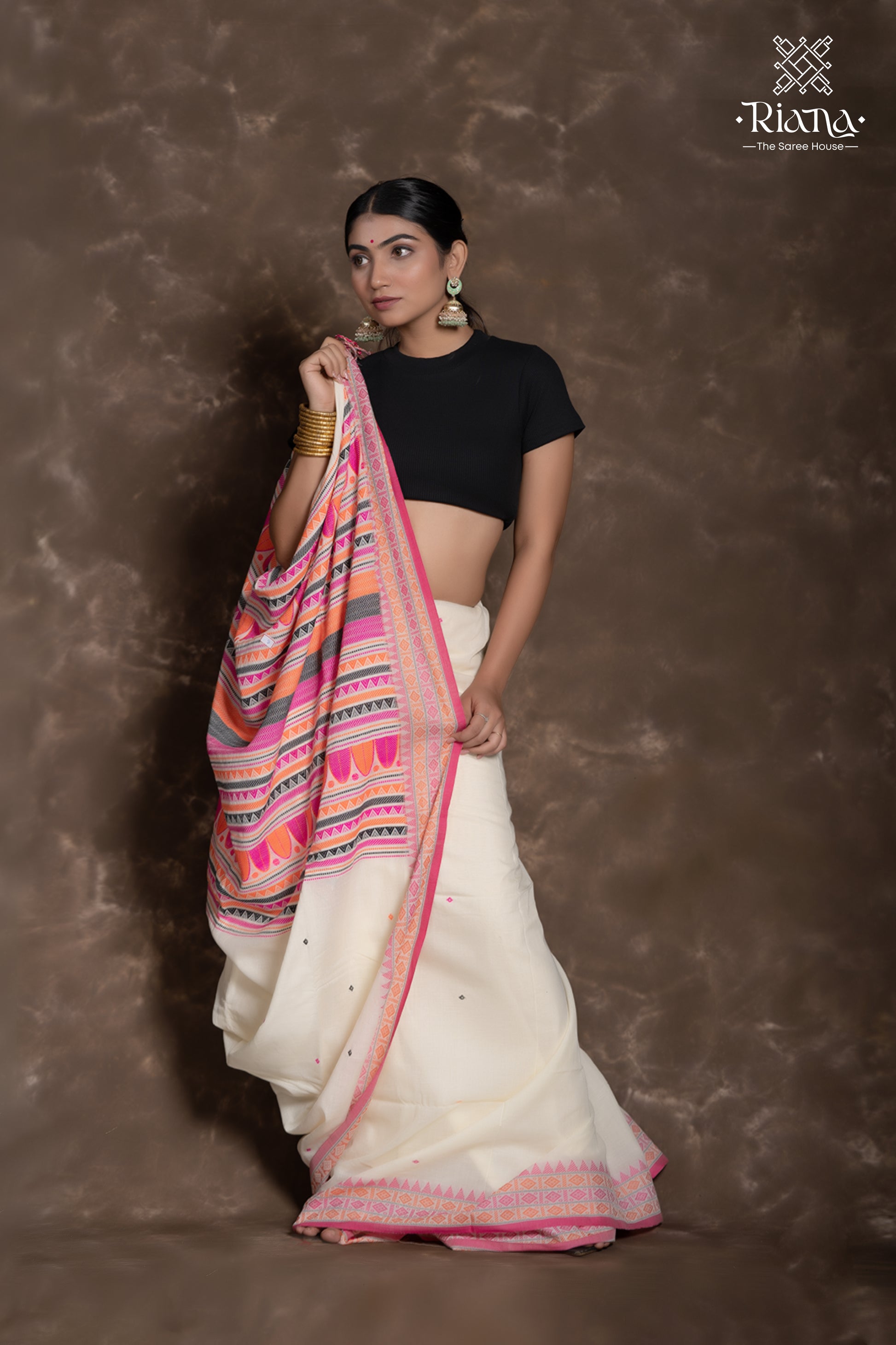 Experience elegance with our Mercerised Cotton Handloom Saree. Expertly crafted by skilled artisans, it boasts a lustrous finish and soft texture. Perfect for any occasion, this saree combines traditional weaving techniques with modern sophistication, offering a timeless addition to your wardrobe that radiates grace and style.
