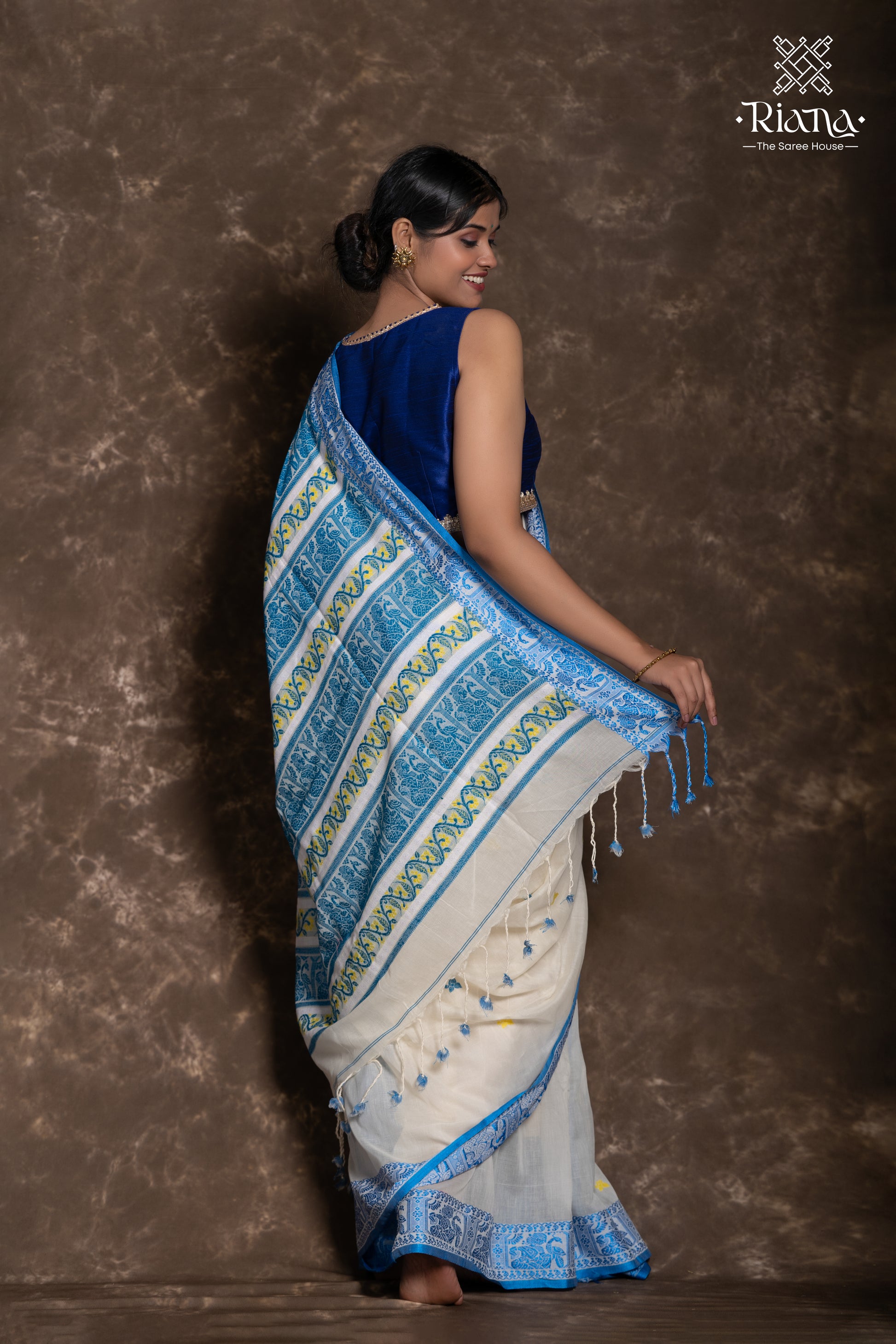 Experience elegance with our Mercerised Cotton Handloom Saree. Expertly crafted by skilled artisans, it boasts a lustrous finish and soft texture. Perfect for any occasion, this saree combines traditional weaving techniques with modern sophistication, offering a timeless addition to your wardrobe that radiates grace and style.