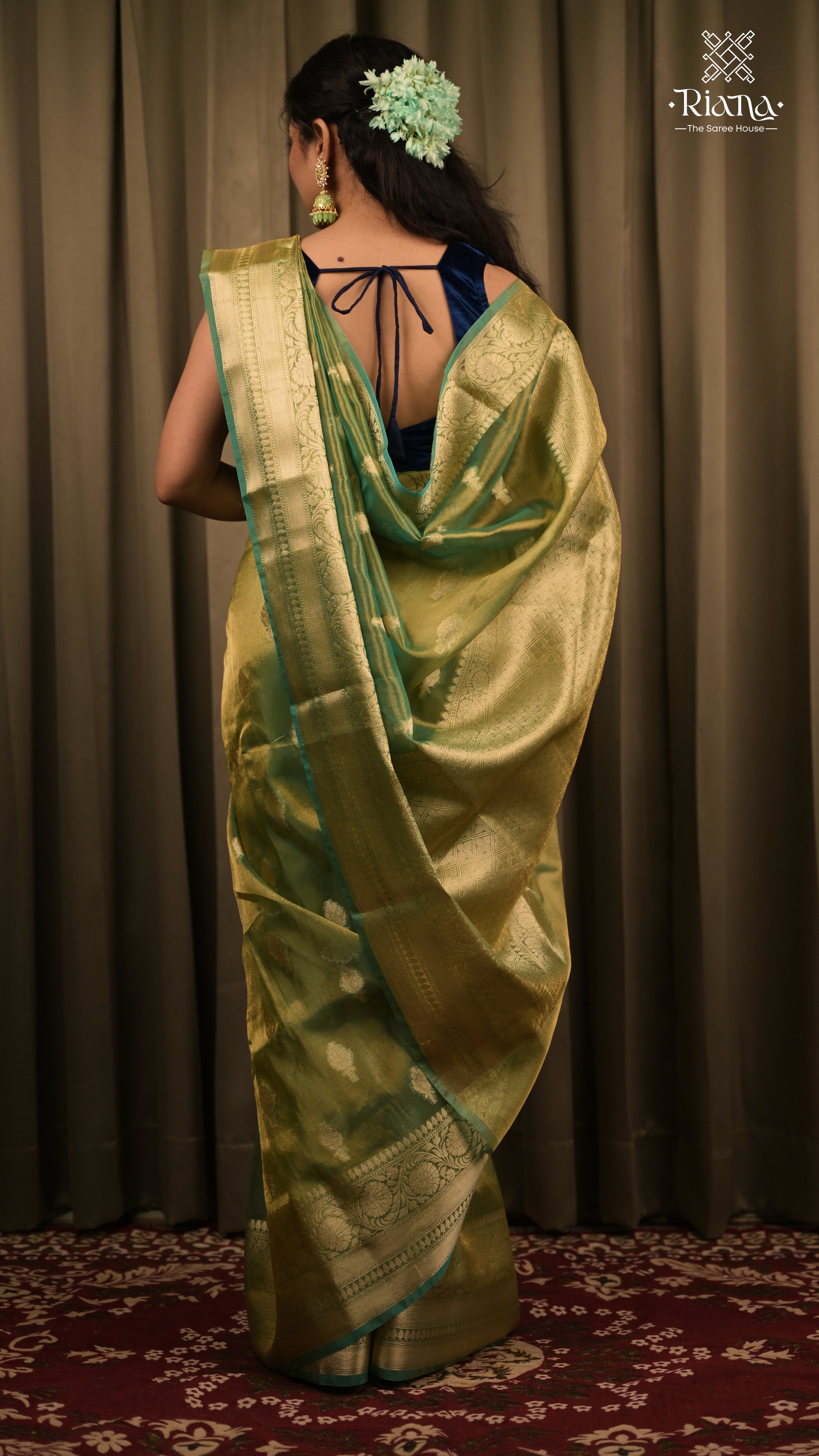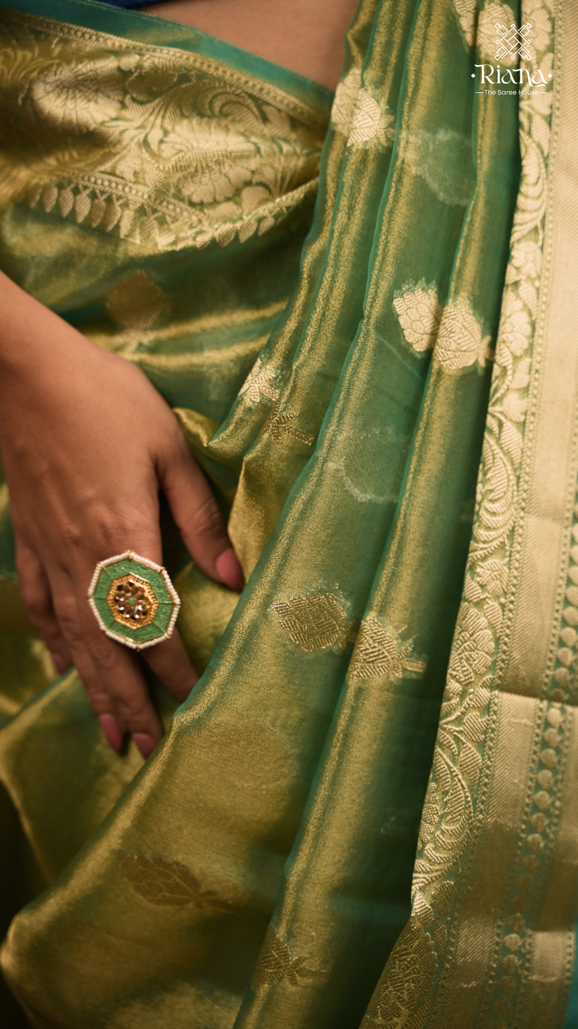 Embodying divine femininity powerful yet serene, A graceful blend of raw elegance and charm for festive wear.