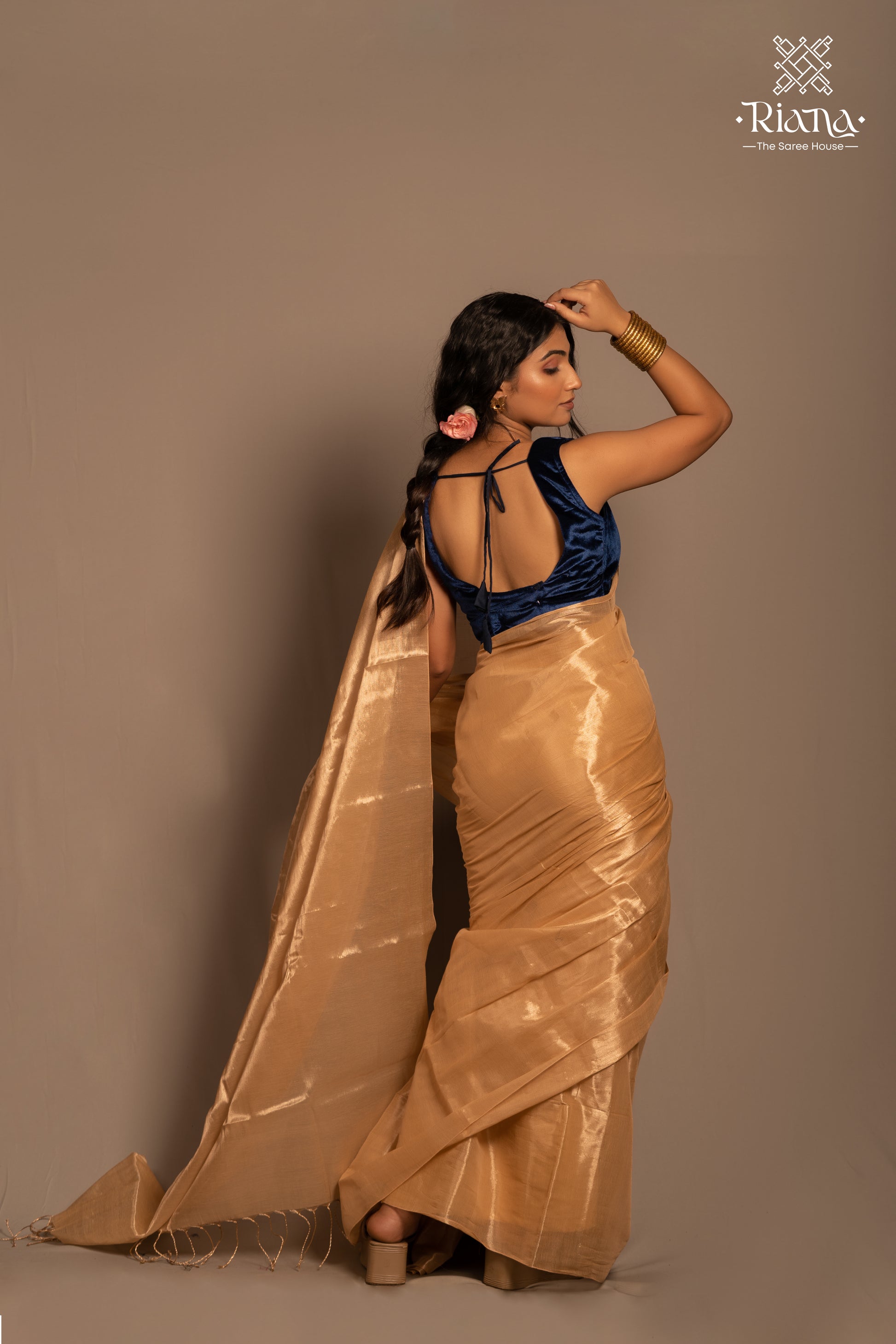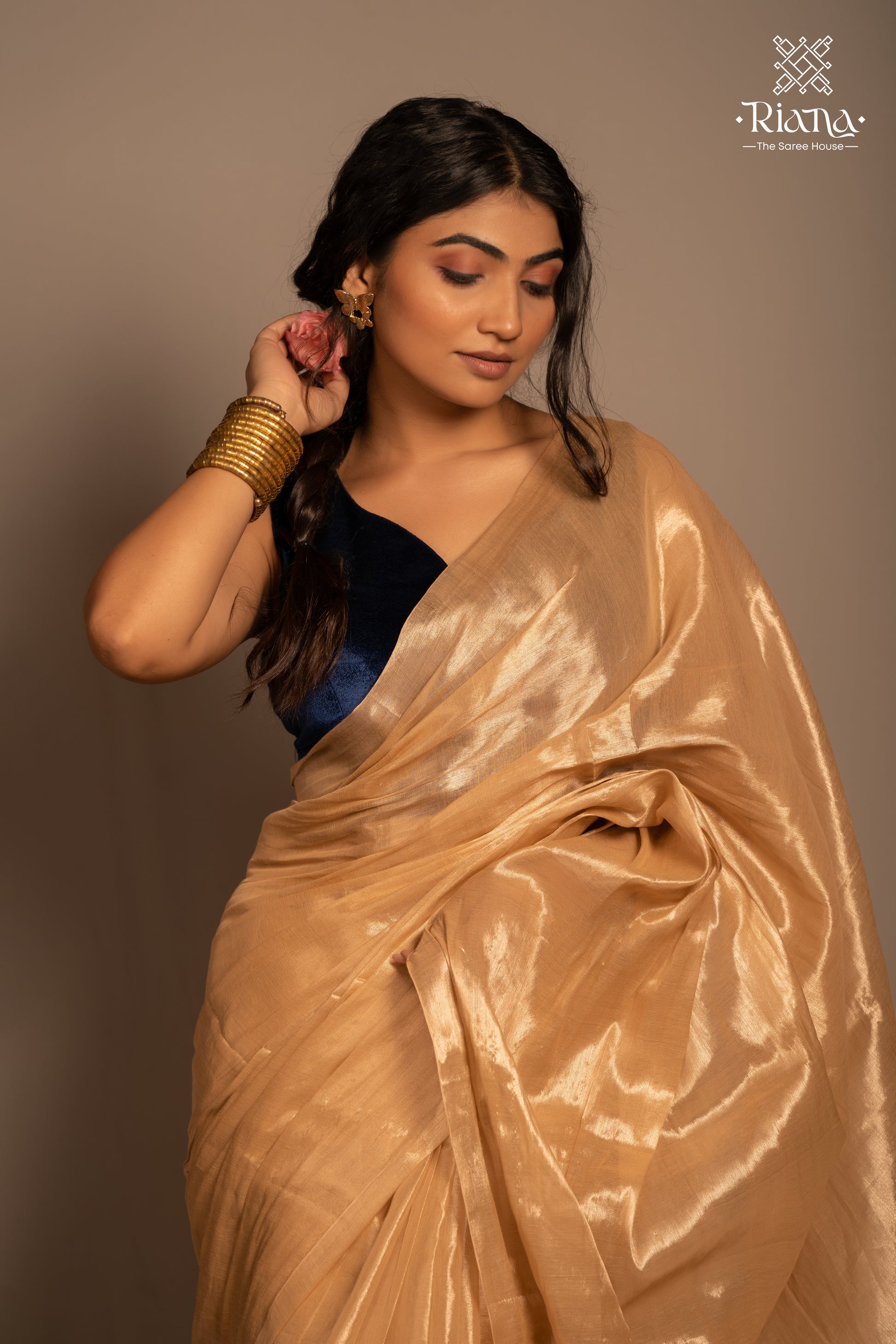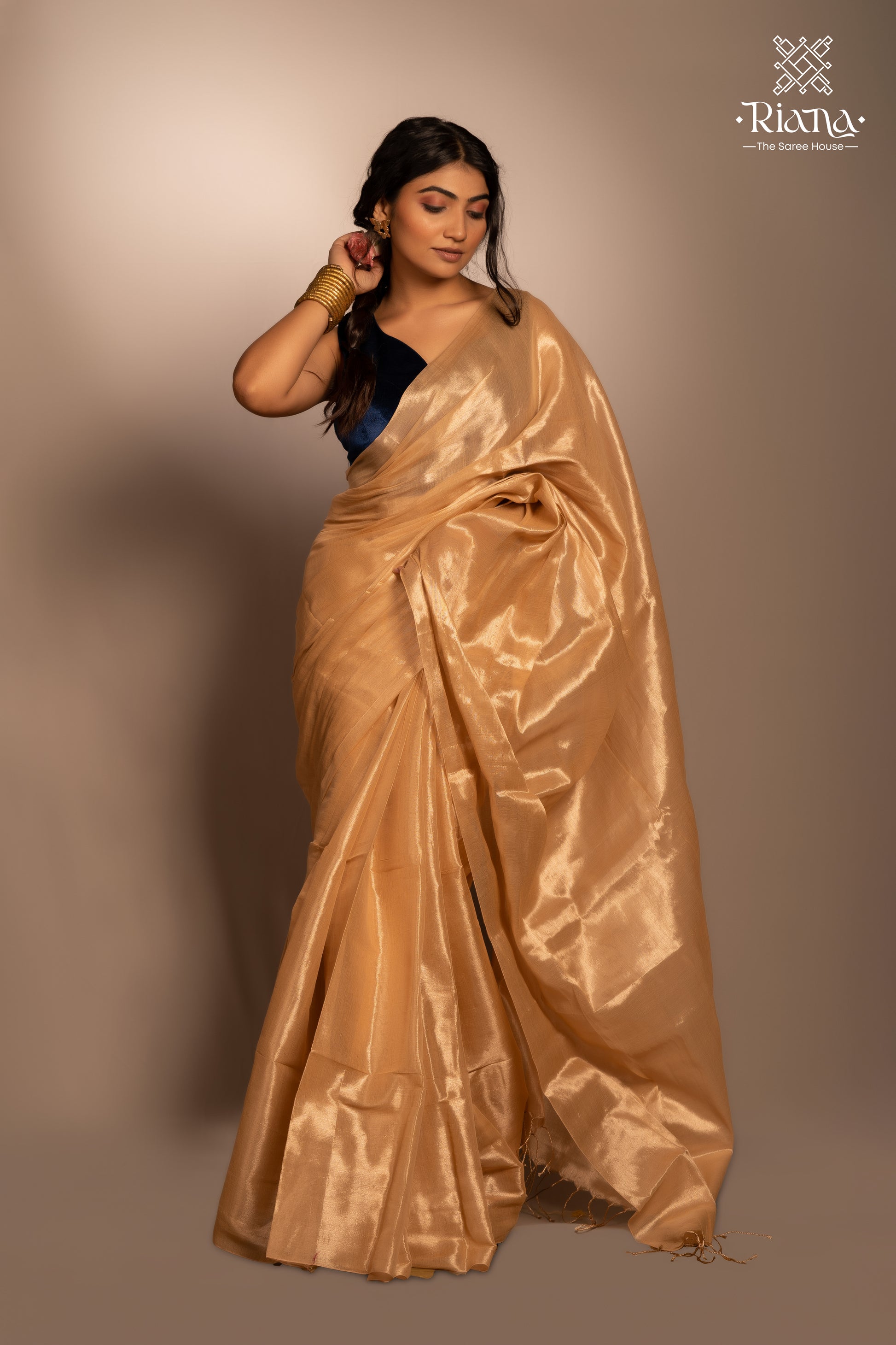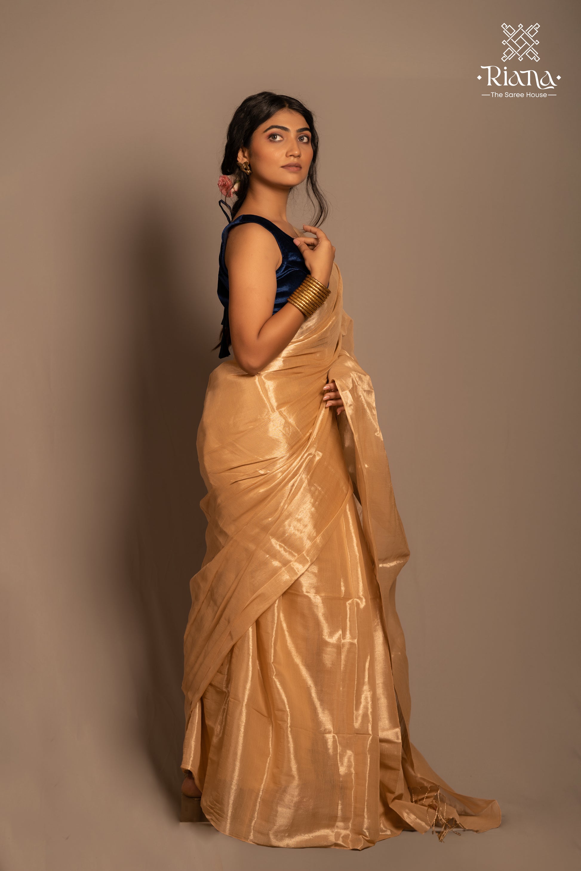 Embrace luxury with our Tissue Cotton Handloom Saree. Crafted by skilled artisans, it combines the elegance of tissue fabric with the comfort of cotton. Its delicate sheen and intricate patterns make it perfect for special occasions, offering a sophisticated touch to your ensemble. A timeless addition to your wardrobe.