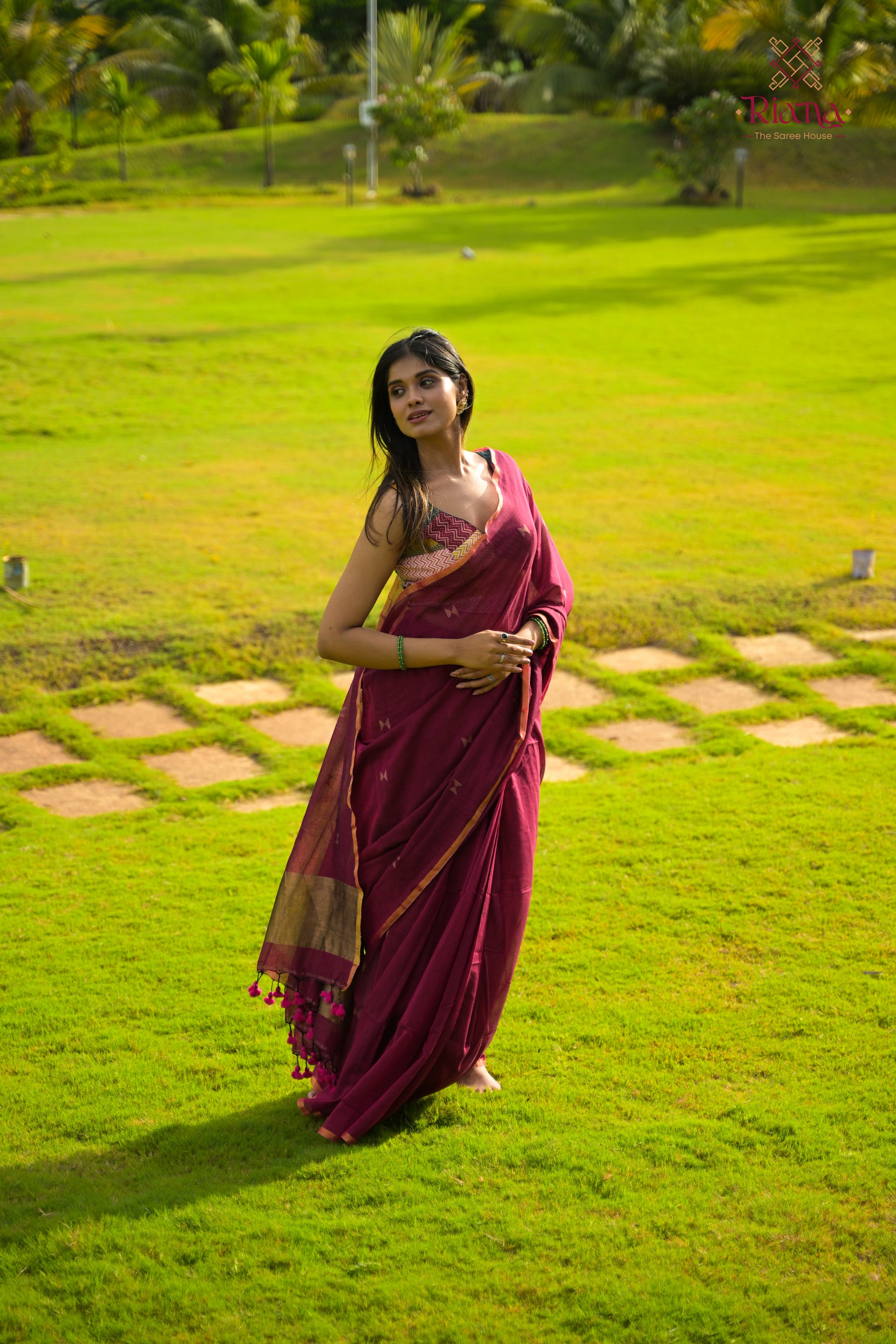 A maroon cotton saree that radiates fire and freedom in every thread. It’s the heartbeat of a wild spirit — bold, untamed, and drenched in the joy of being unapologetically alive.