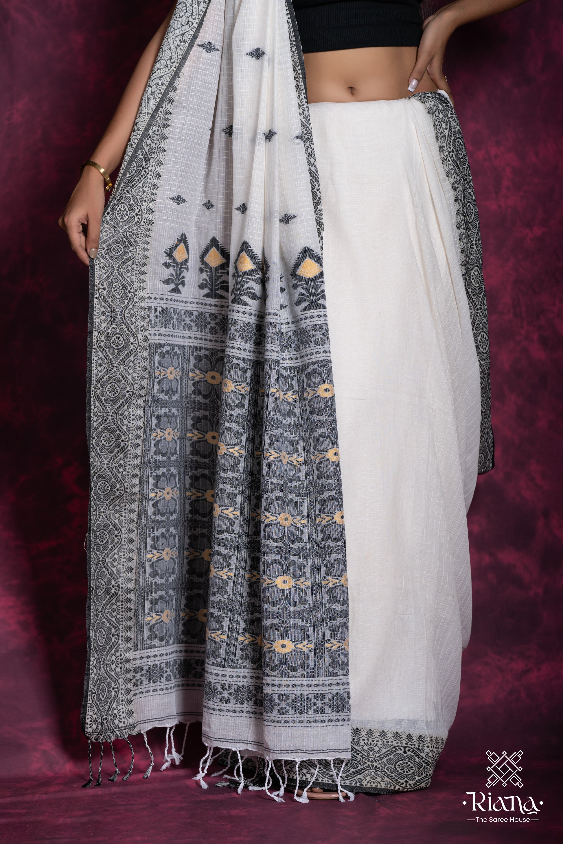 Elevate your wardrobe with our Khadi Cotton Handloom Saree, a blend of tradition and elegance. Handwoven by skilled artisans, this saree offers unmatched comfort and timeless style. Perfect for any occasion, it celebrates sustainable fashion while supporting the rich heritage of Indian weaving.