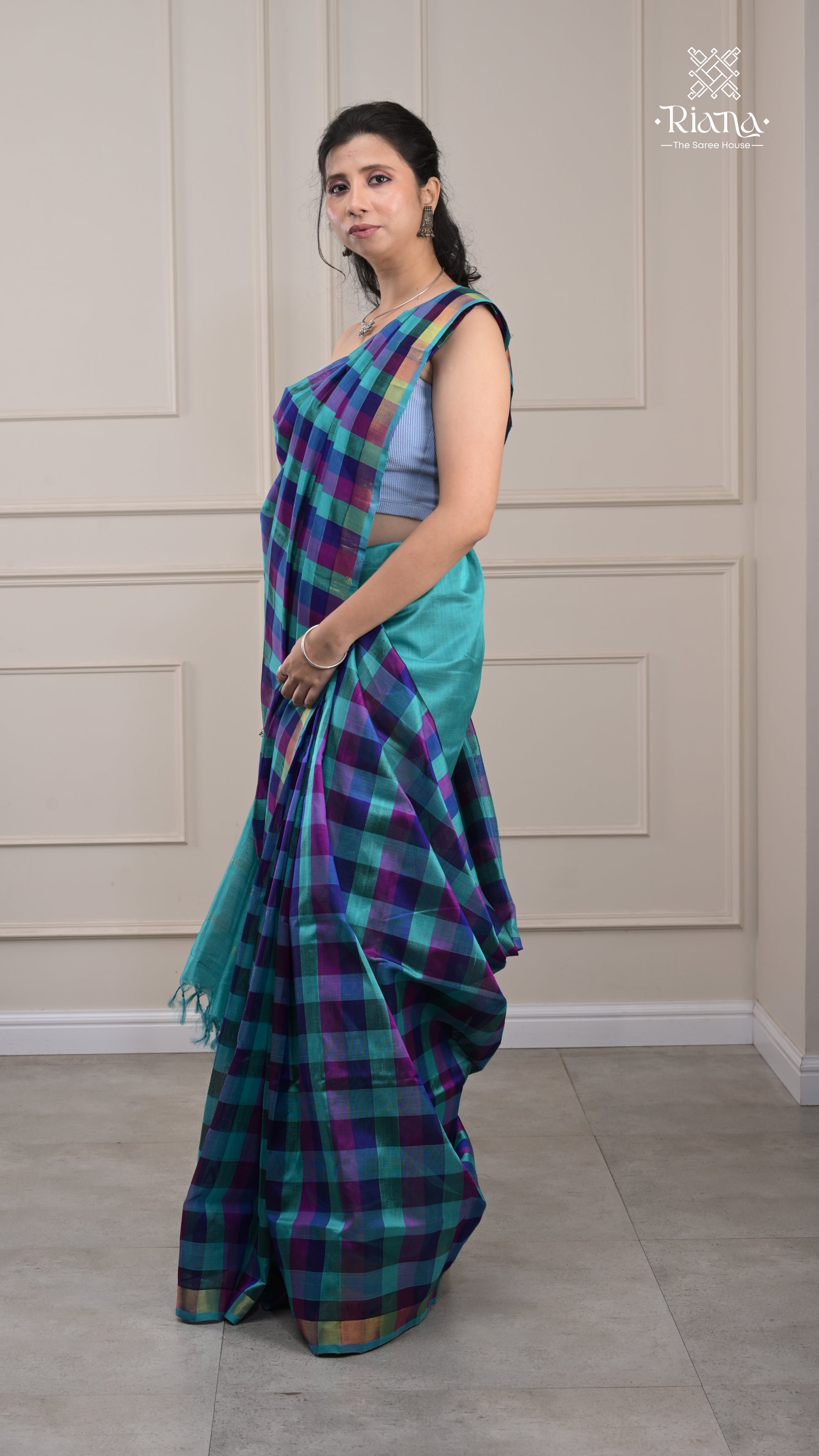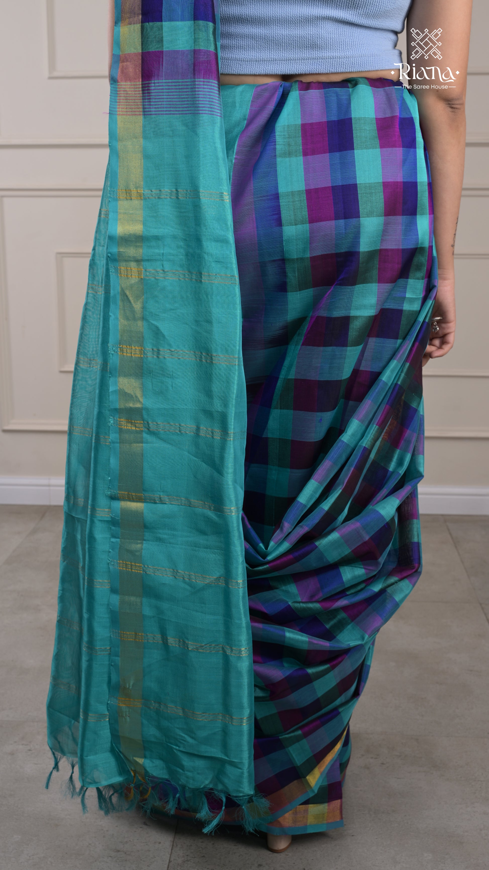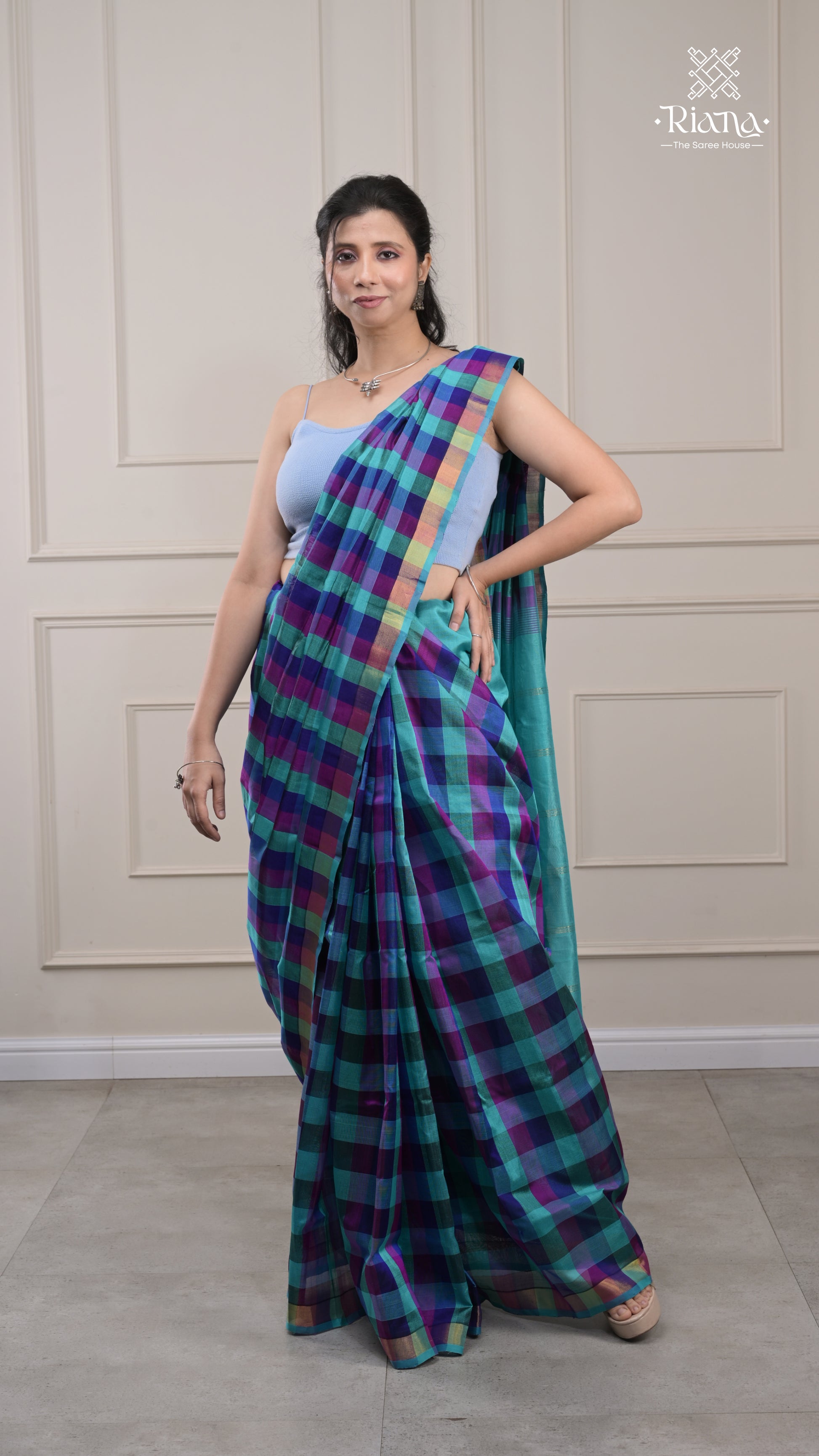 From the Rajam Collection, this checks-pattern saree beautifully blends traditional design with modern elegance perfect for a timeless festive look.