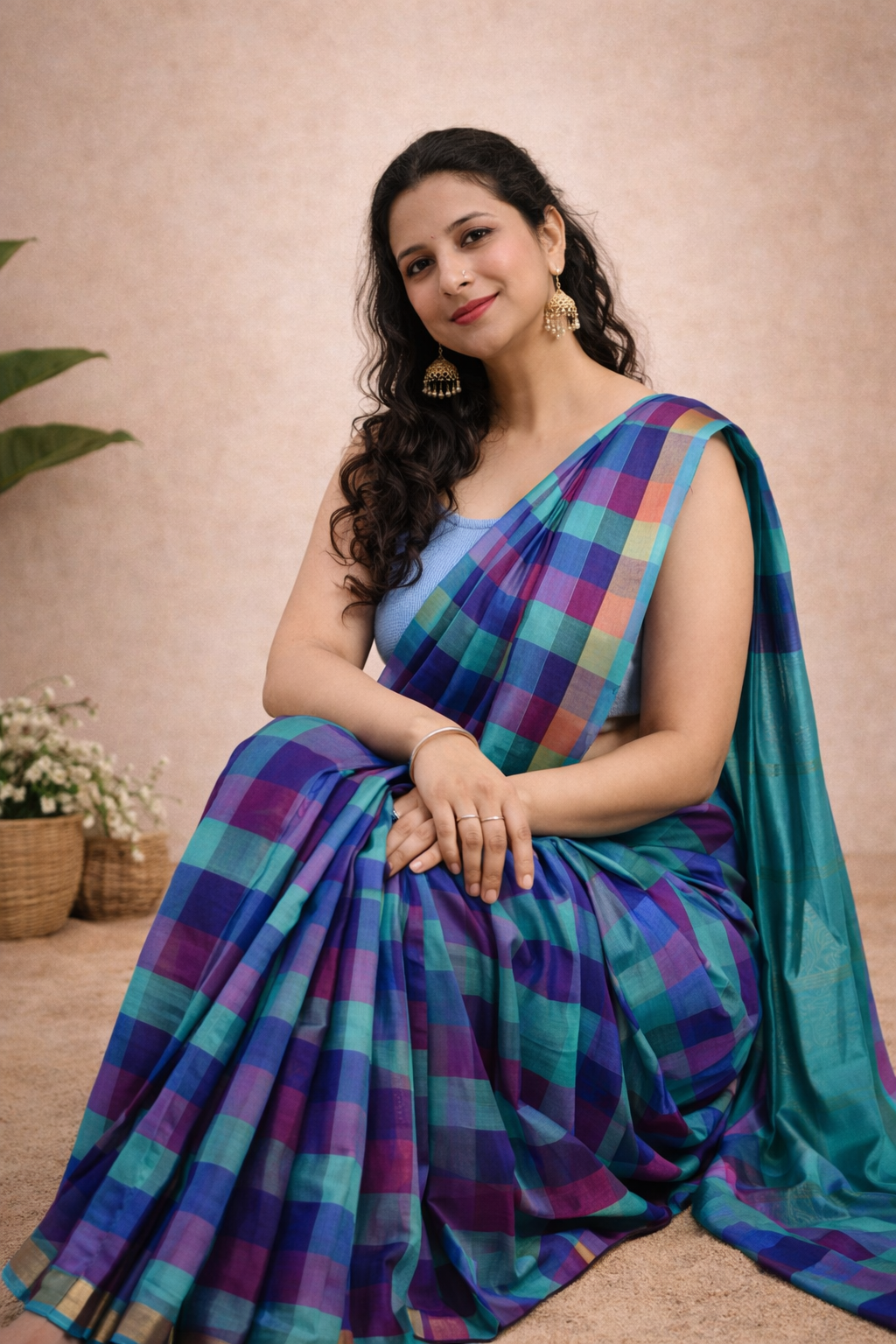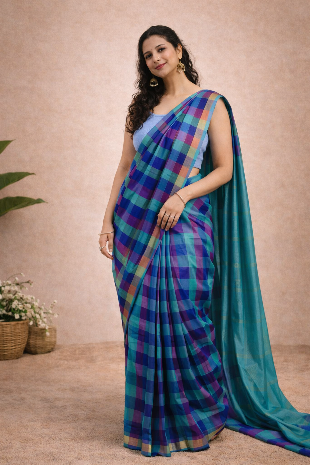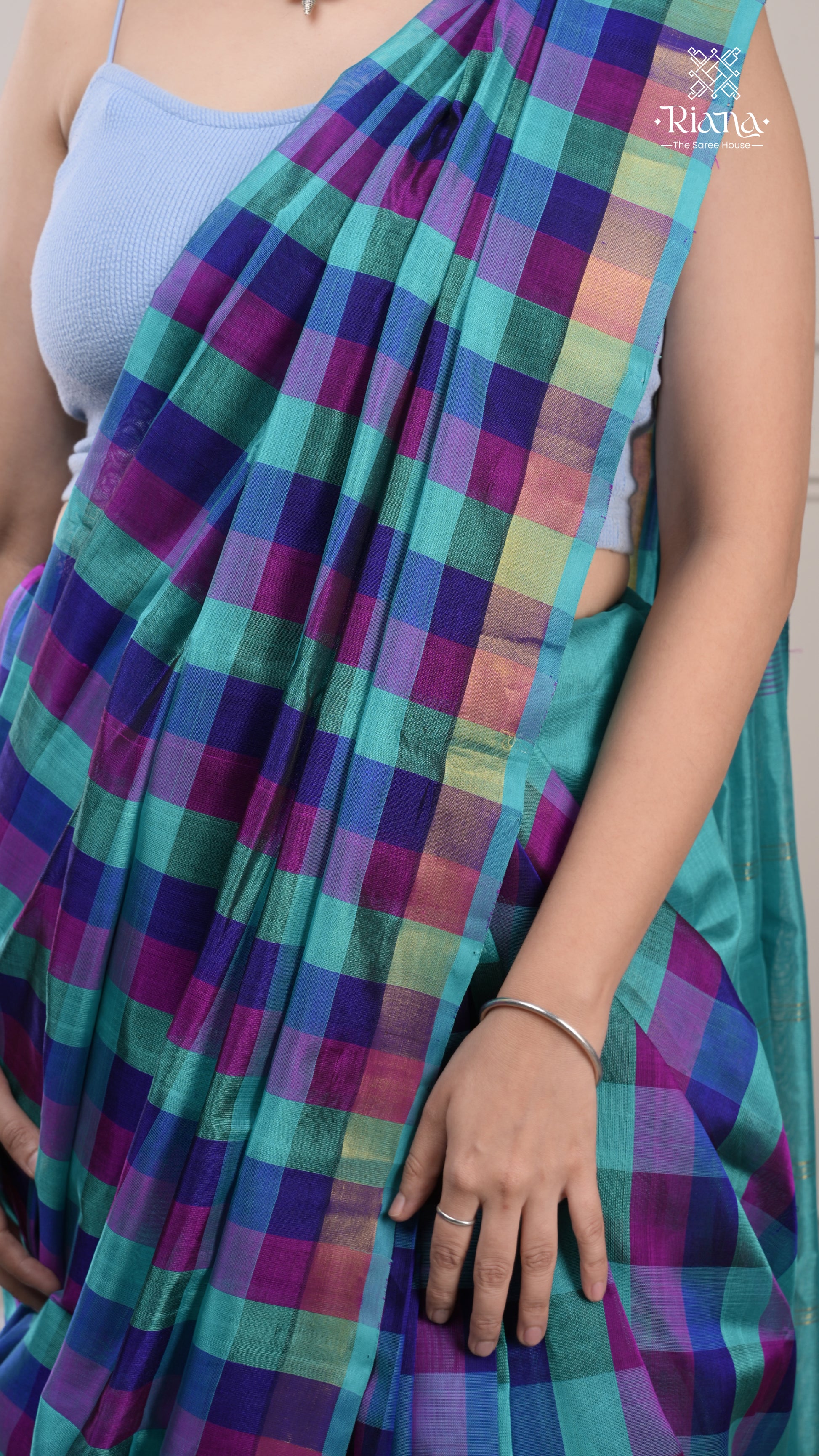 From the Rajam Collection, this checks-pattern saree beautifully blends traditional design with modern elegance perfect for a timeless festive look.
