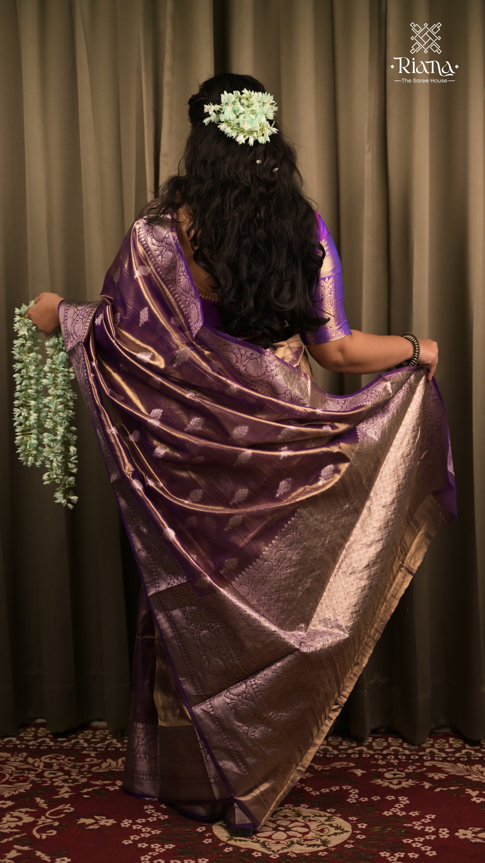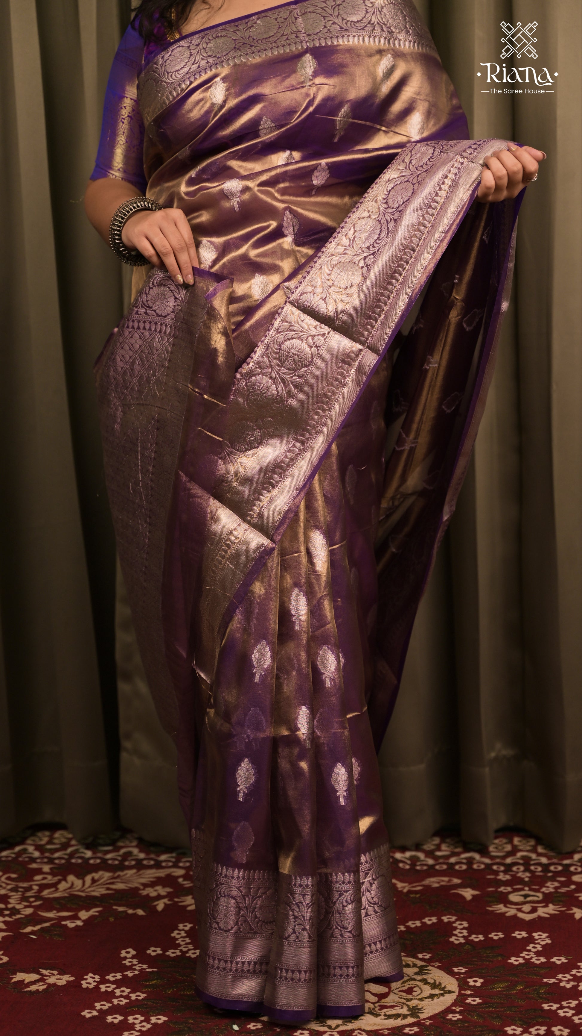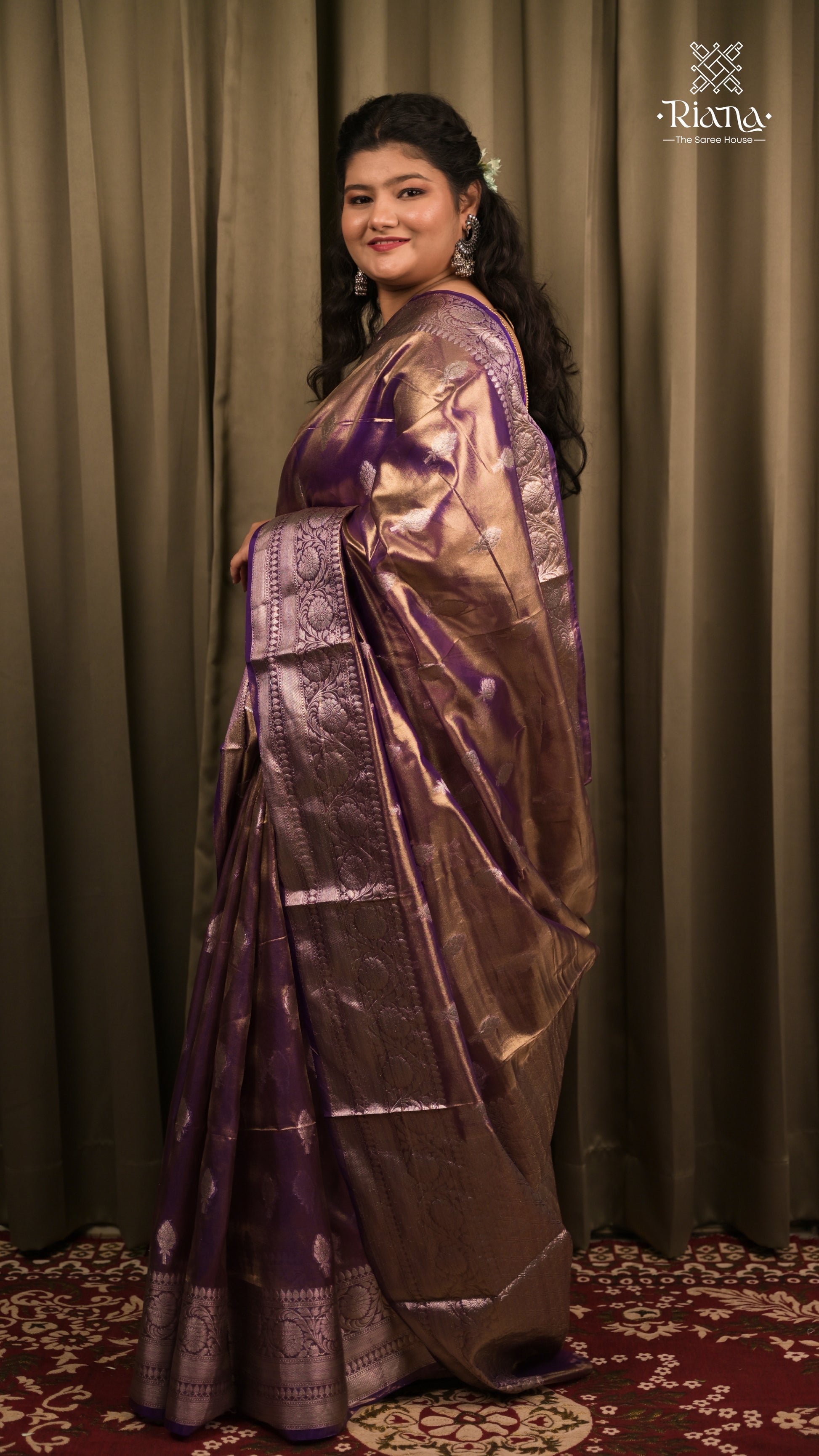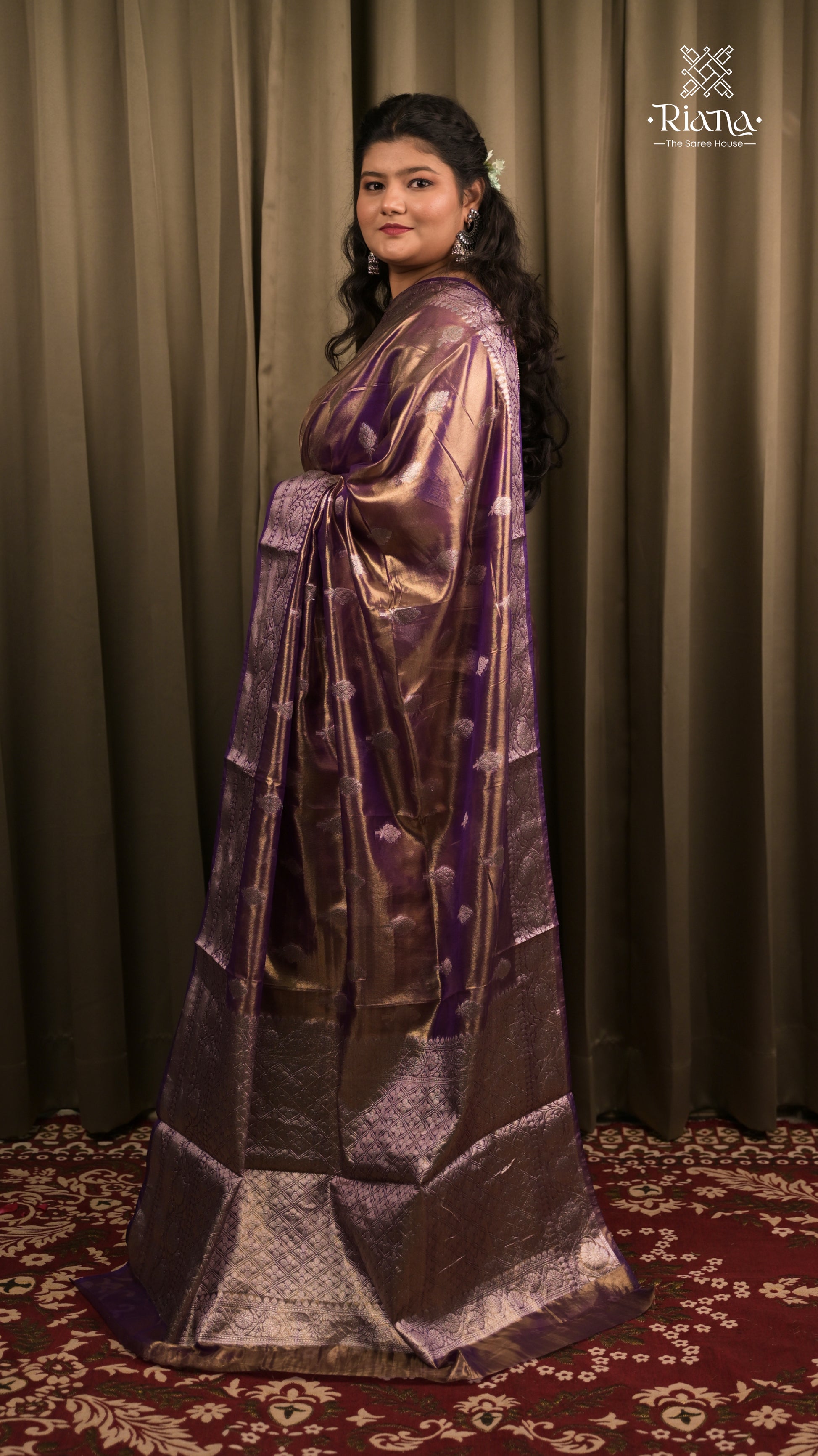 Sweet like memories, tied with every thread, this purple Tussar silk x Tissue saree blends festive grace with a gentle sheen, making it a keepsake you’ll cherish with every drape.