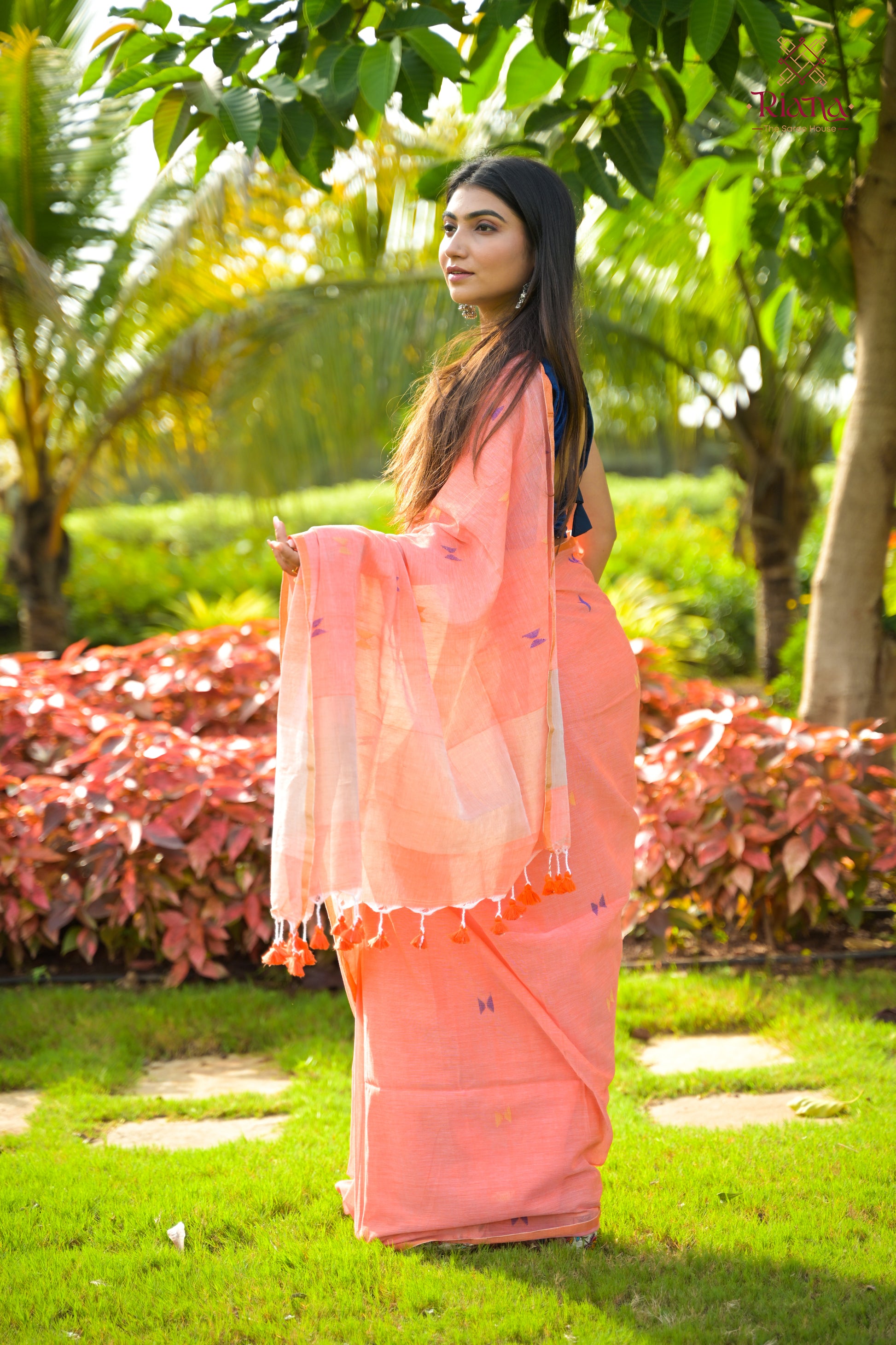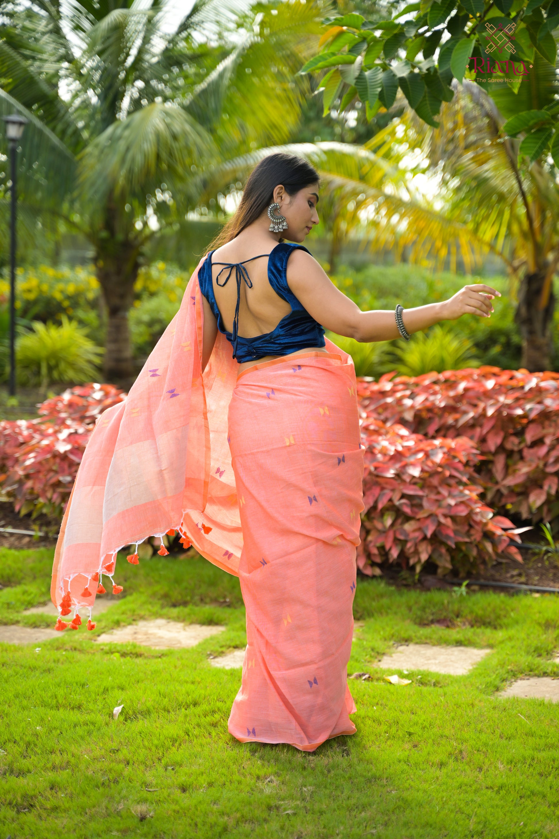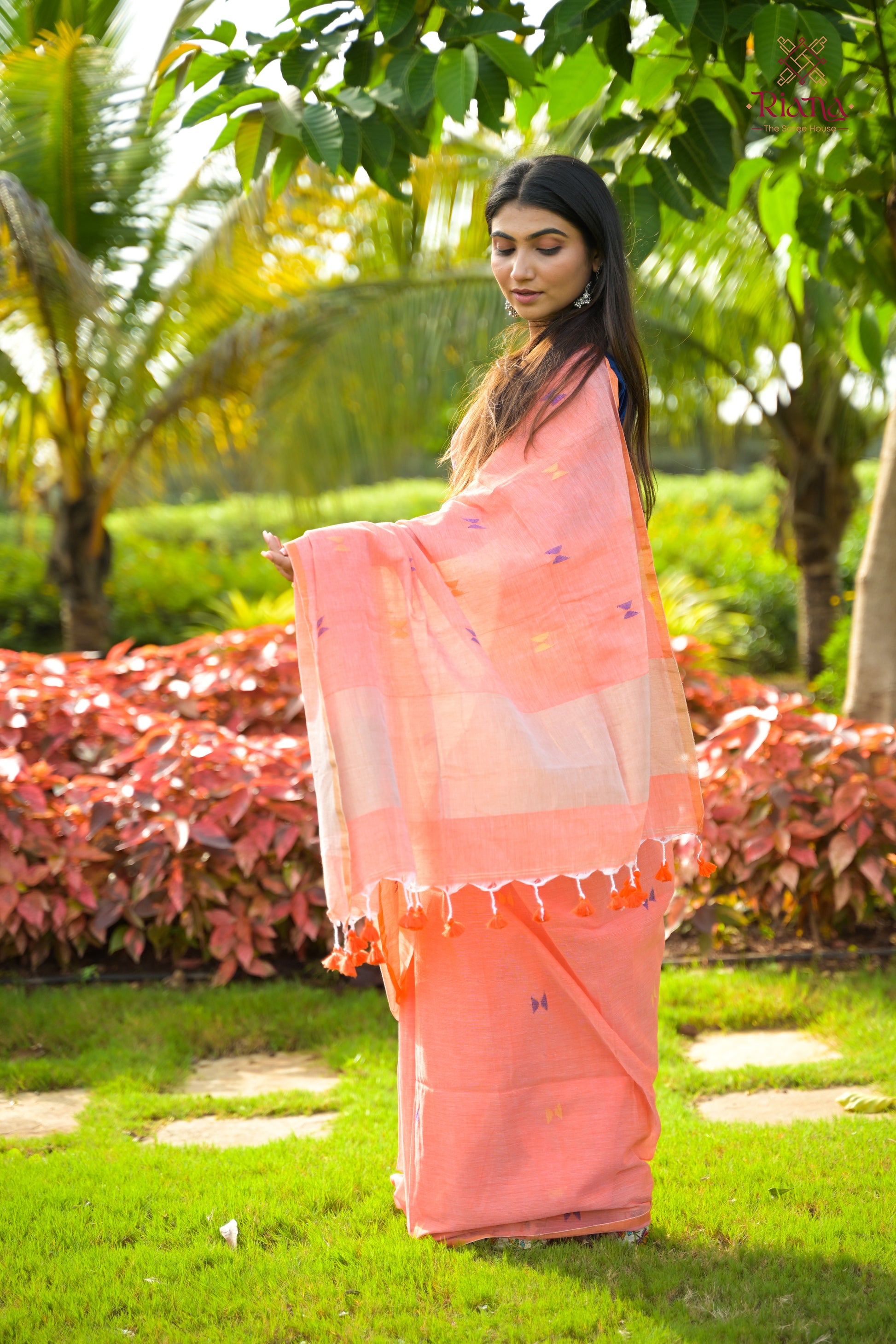 An off-white cotton saree that echoes the silence of soulful solitude. In every fold, it carries the beauty of stillness, the weight of memories, and the quiet poetry of being alone, yet complete.