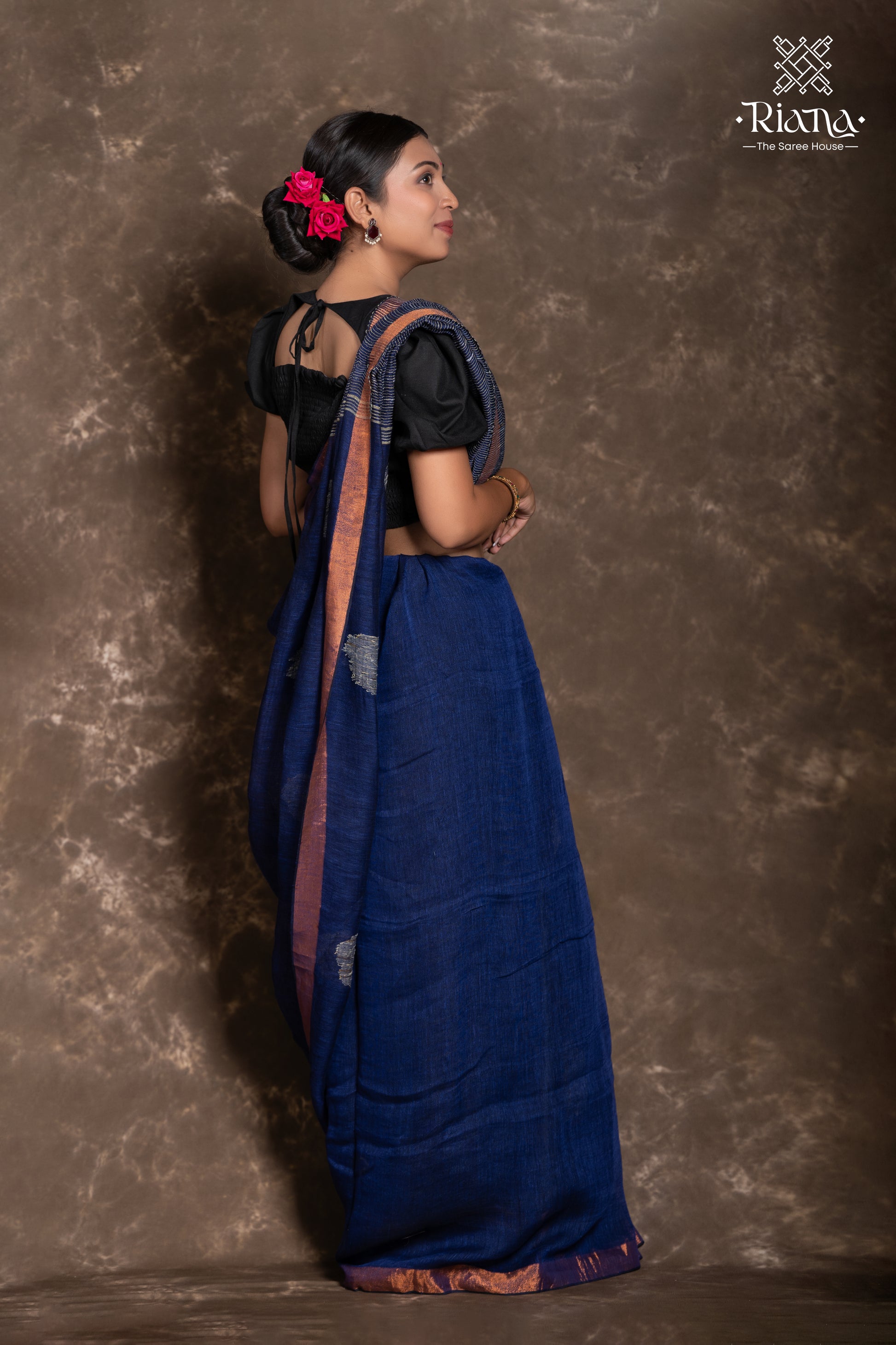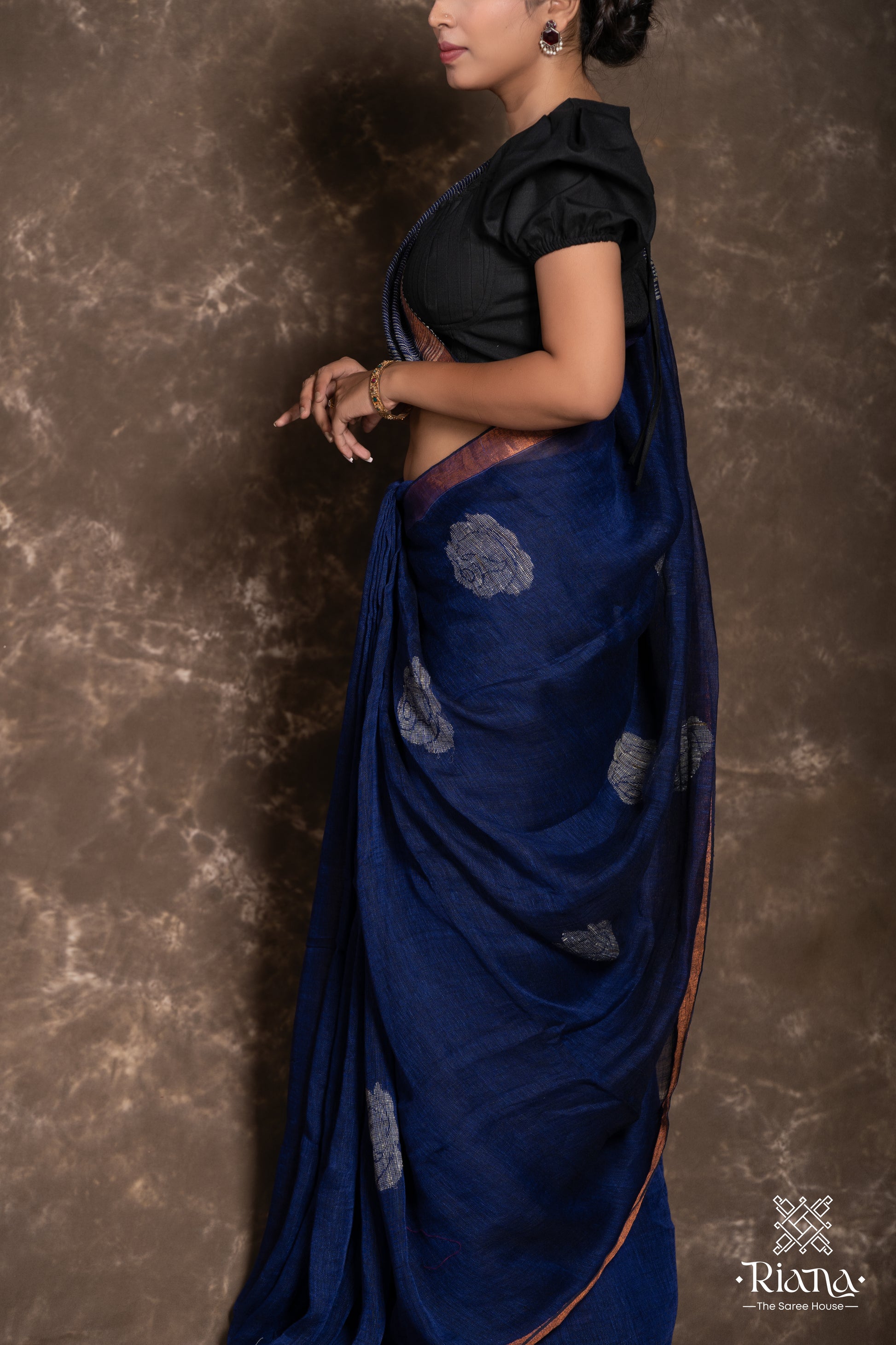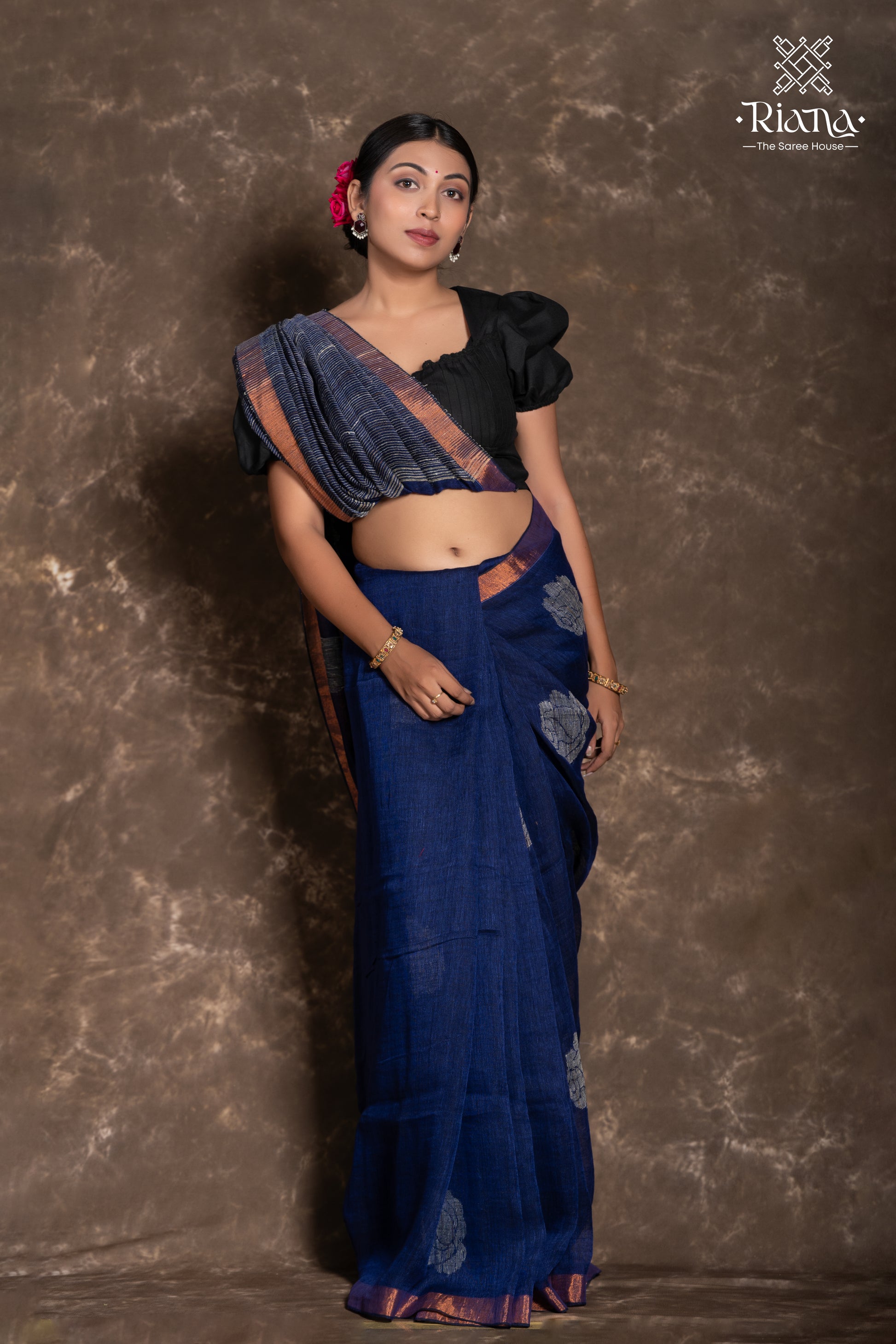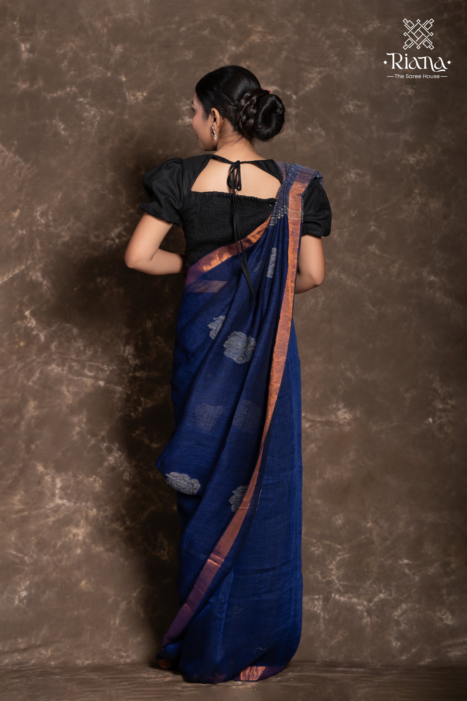 Experience the effortless elegance of our Linen Handloom Saree. Handcrafted by skilled artisans, this saree boasts a lightweight and breathable fabric perfect for any season. Its natural texture and sophisticated drape offer a timeless appeal, combining comfort with chic, making it a versatile addition to your wardrobe.