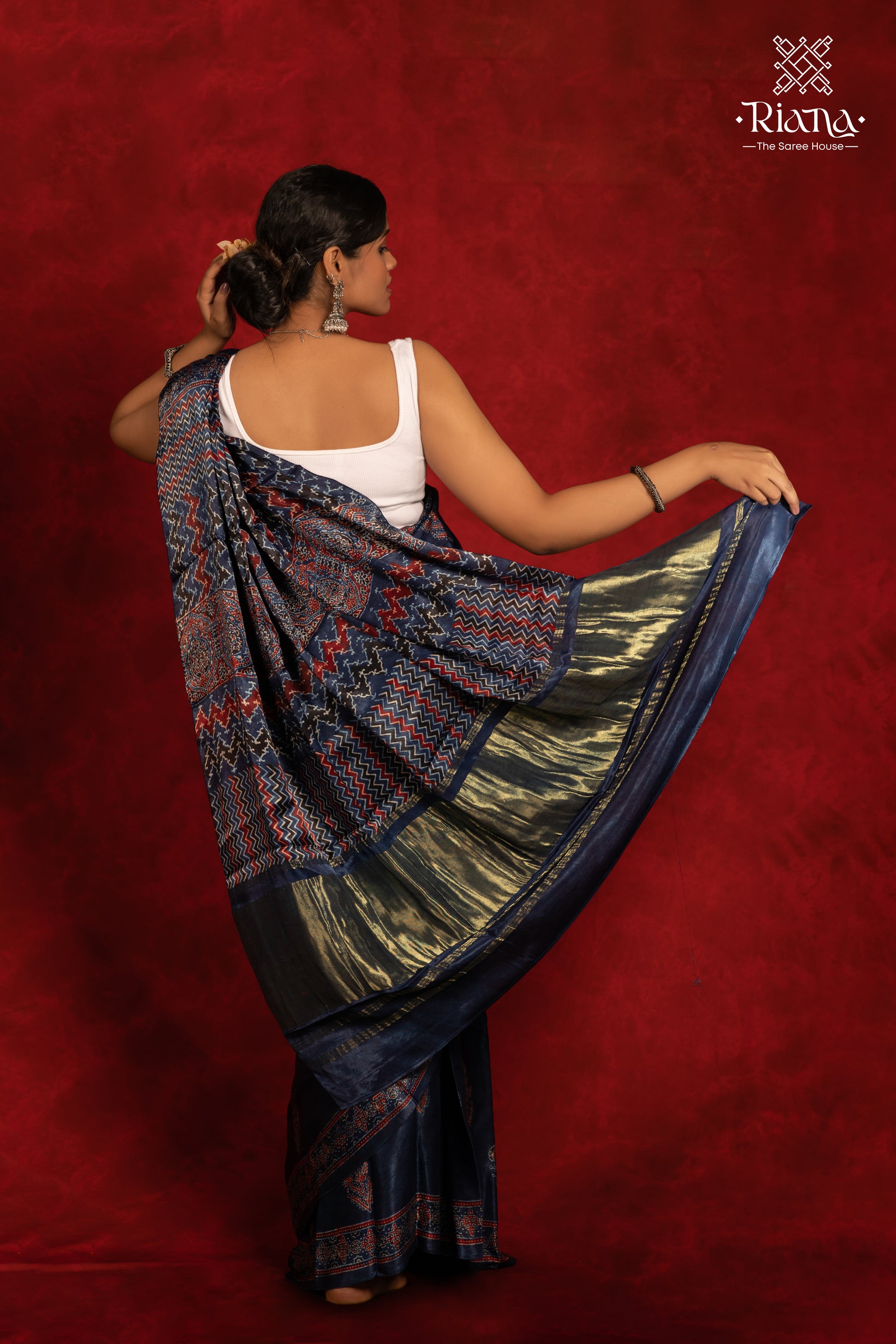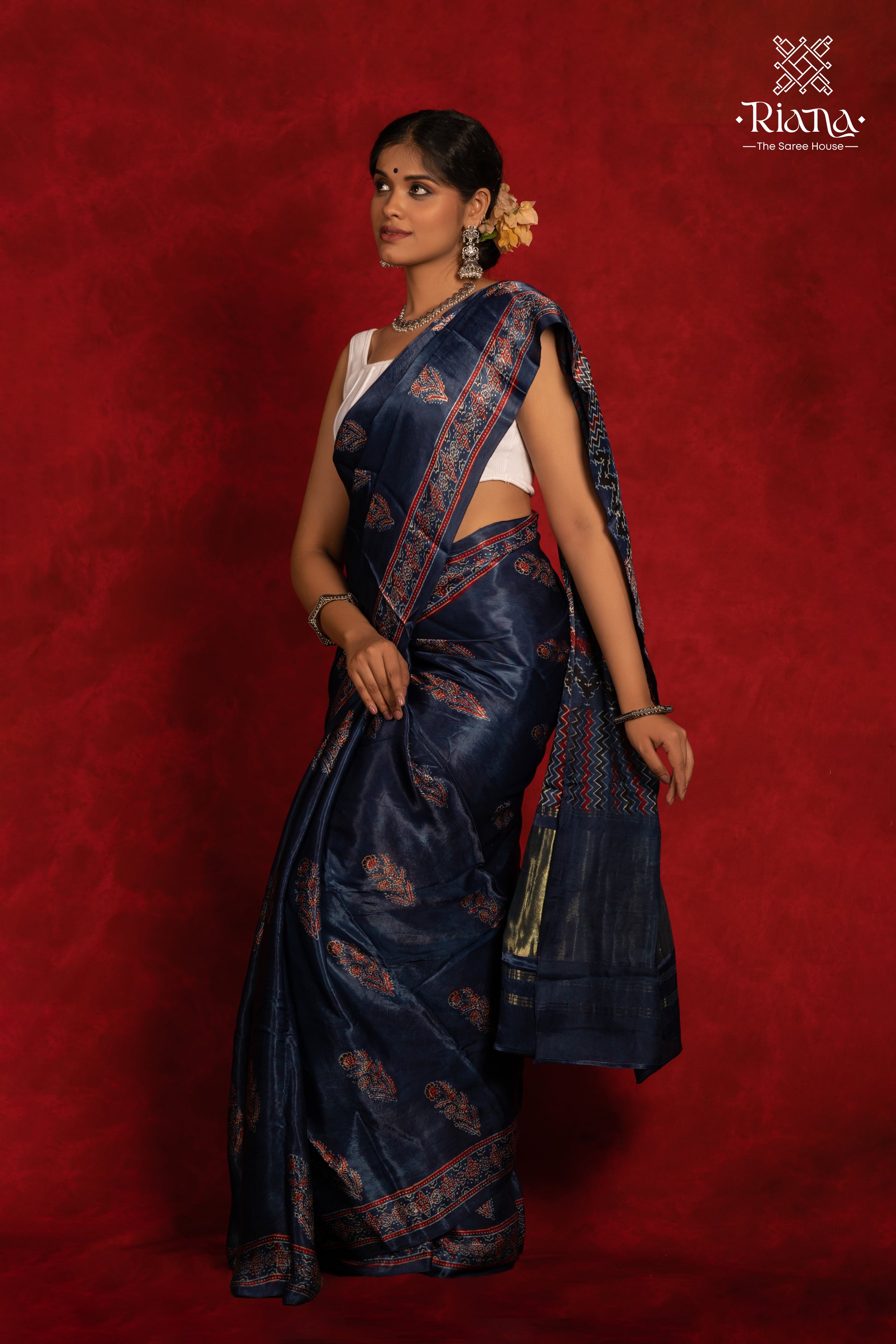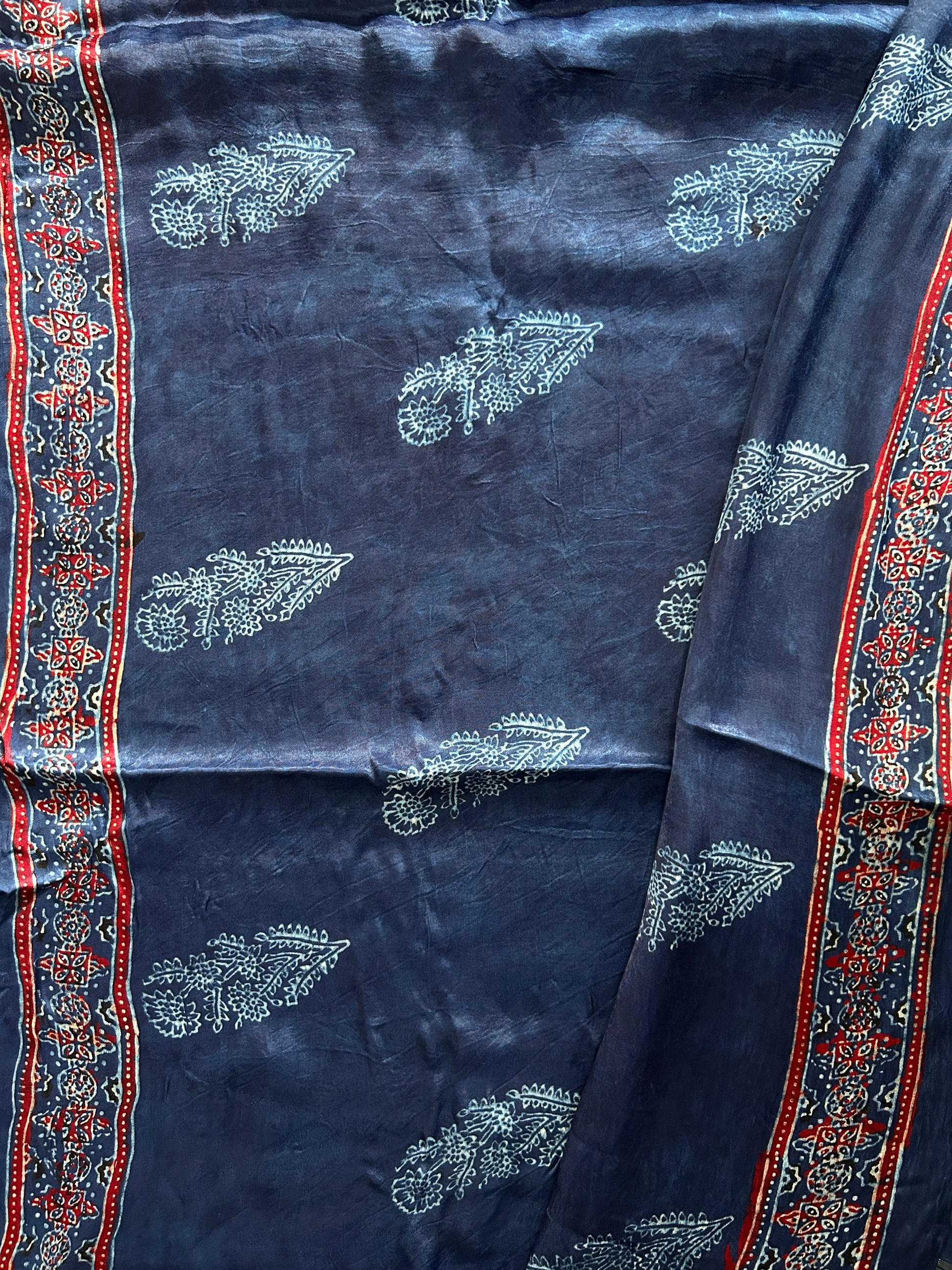 Indulge in the luxury of our Modal Silk Handprinted Ajrakh Saree, crafted with natural dyes. Each piece features intricate Ajrakh patterns, showcasing traditional artistry. The soft, lustrous modal silk drapes beautifully, making it perfect for any occasion. Embrace timeless elegance with this eco-friendly, handcrafted masterpiece.