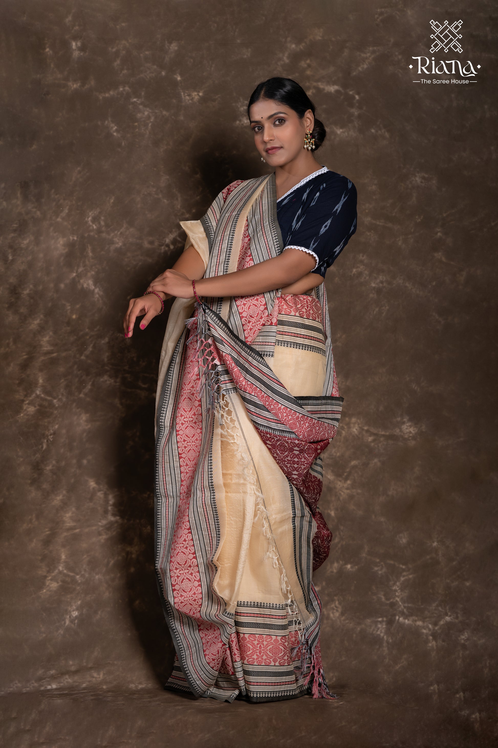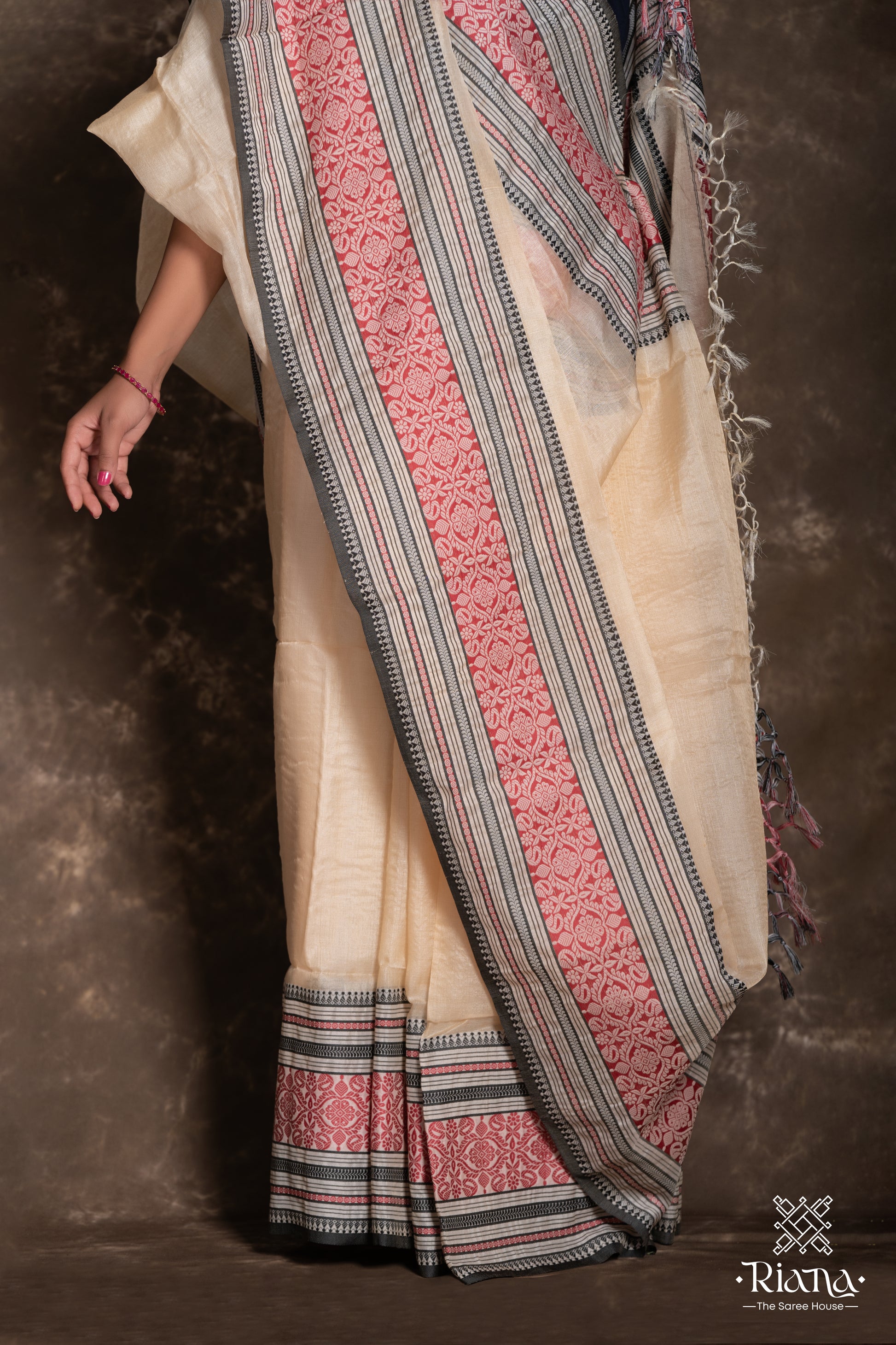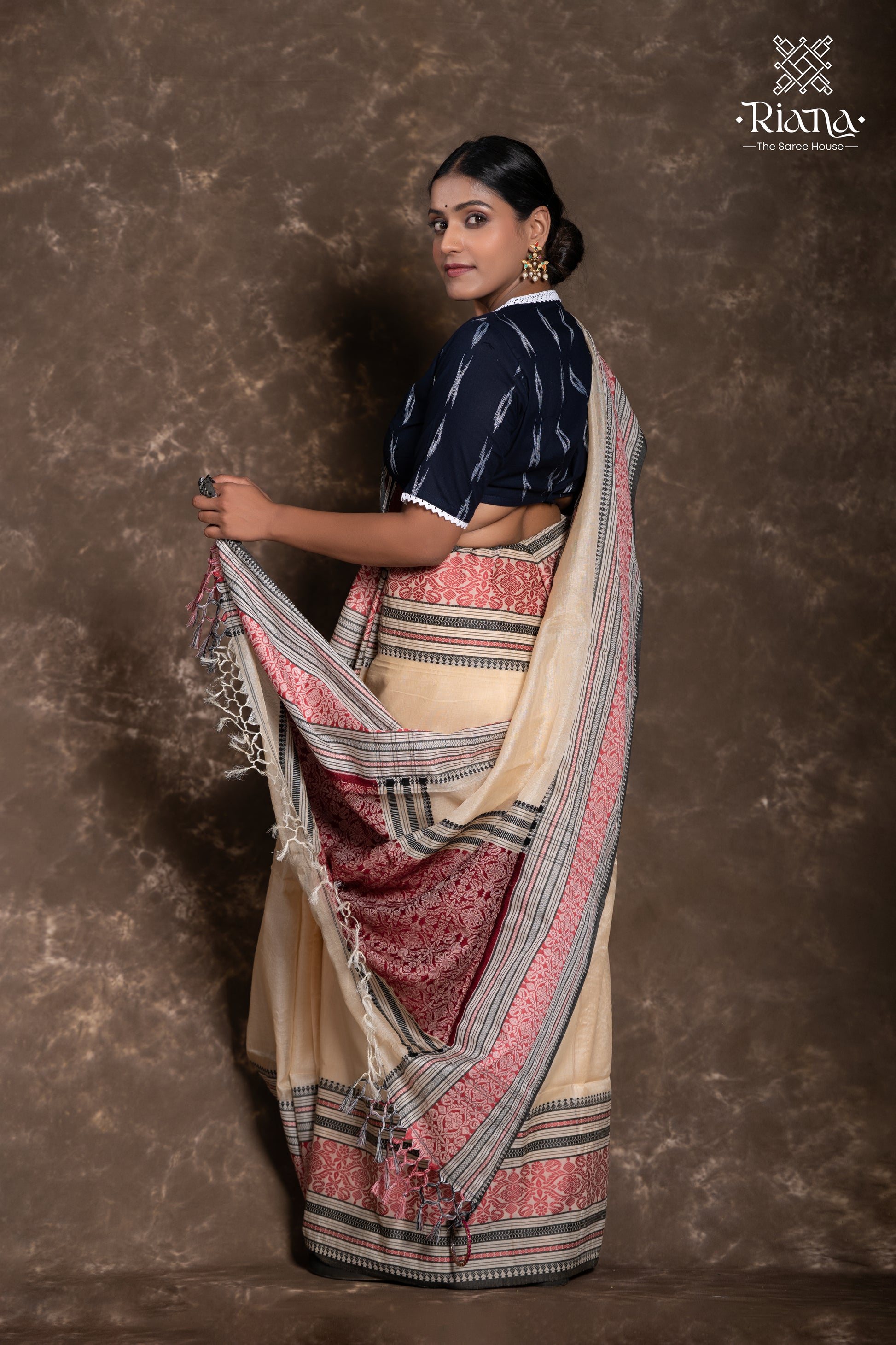 Embrace the luxury of our Tussar Silk Handloom Saree, meticulously crafted by skilled artisans. Known for its rich texture and natural sheen, this saree exudes elegance and sophistication. Perfect for special occasions, it combines traditional weaving techniques with timeless beauty, making it a must-have in your wardrobe.