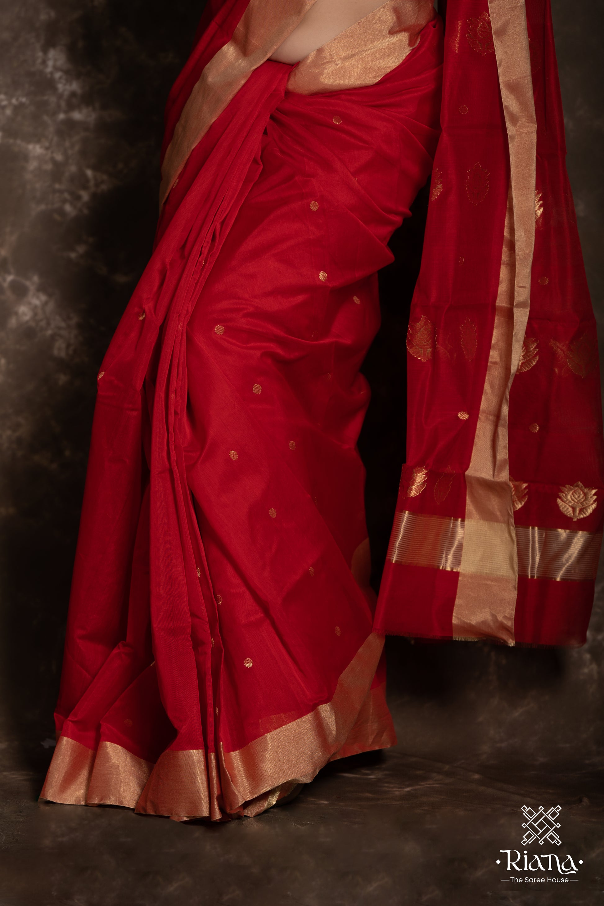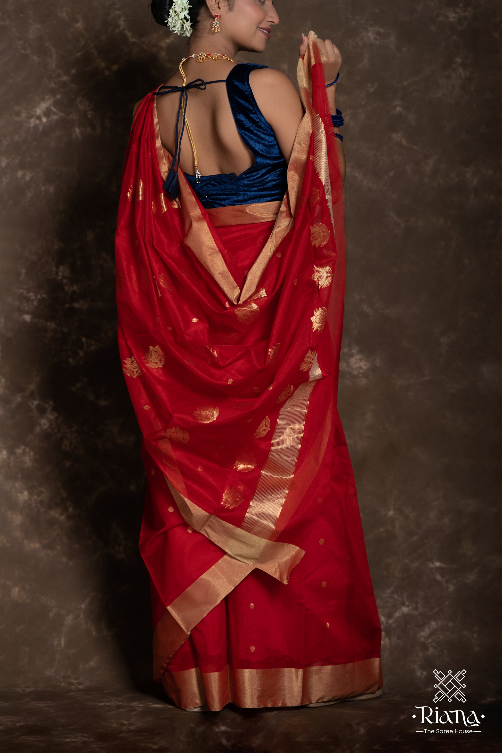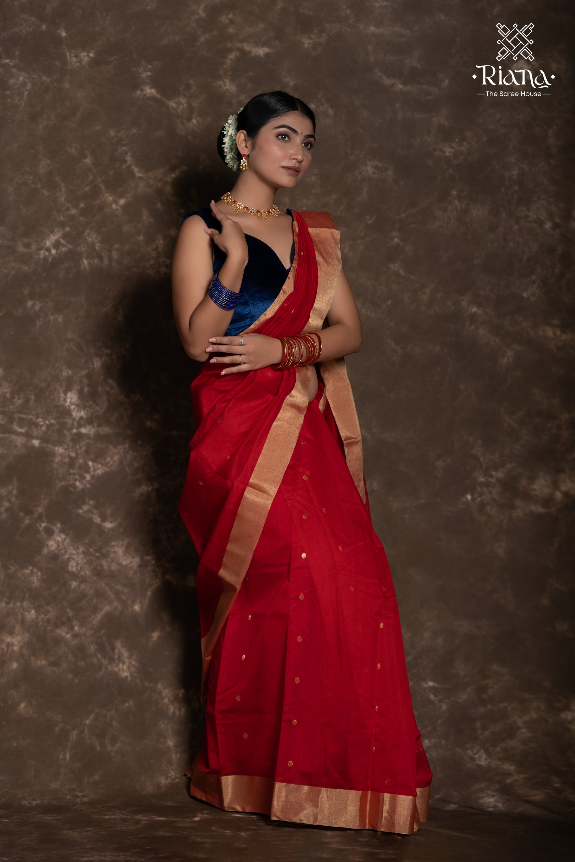Discover elegance with our Chanderi Handloom Saree. Meticulously crafted by skilled artisans, it features a lightweight, sheer texture adorned with intricate patterns. Perfect for any occasion, this saree offers a blend of tradition and modern sophistication, making it a timeless addition to your wardrobe.